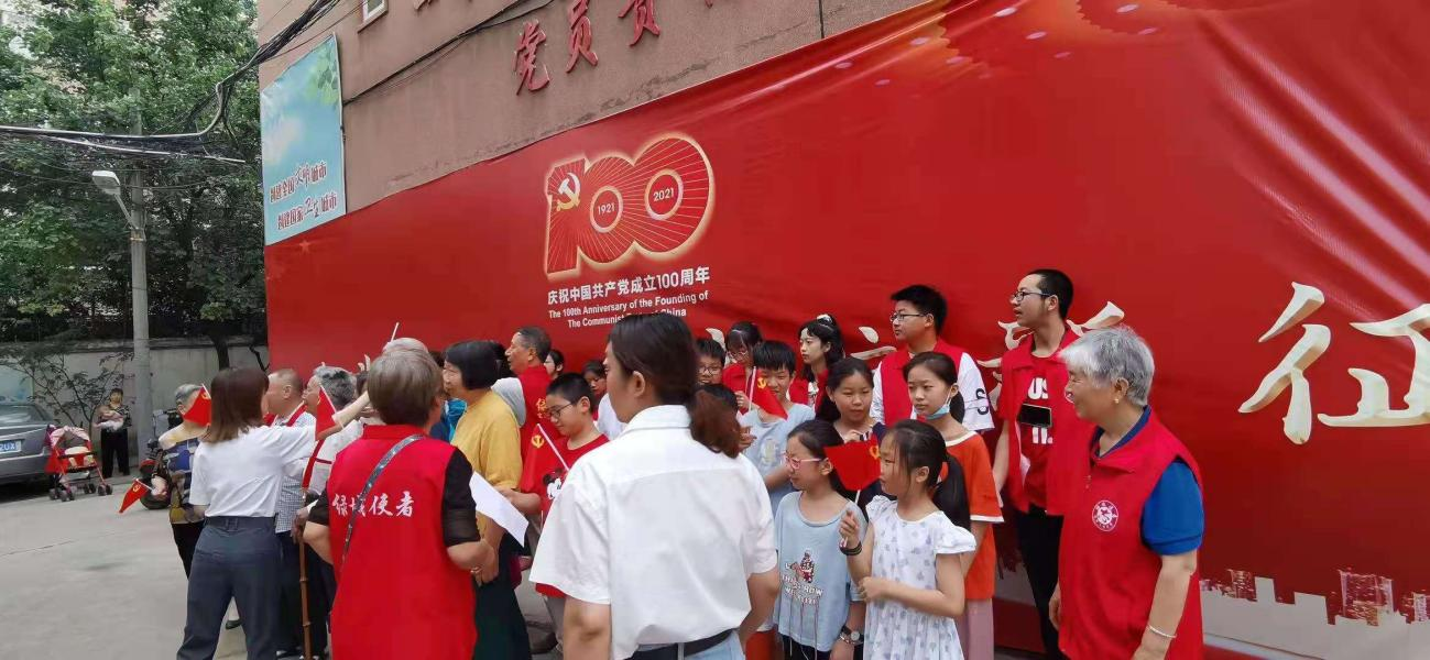 百年来,共产党人初心如磐用信仰和誓言铸就传奇。活动伊始,包括79旬的老人、任教30余载的教师等在内的老党员们激动无比地讲述与党的故事,展示拳拳的爱国之心。雷锋站志愿者深受触动,怀着崇高的敬意为他们佩戴勋章。接着,雷锋站志愿者组织社区居民和爱心课堂的学生满怀深情齐声高唱《没有共产党就没有新中国》。在场人员将党的伟大、对党的热爱化作力量,歌声铿锵有力、振奋人心。随后,活动进入共产党华诞100周年蛋糕分享环节。由老党员首先品尝,社区居民、志愿者等人一一品尝。最后,活动在爱心课堂的学生们观看爱国题材电影中接近尾声。