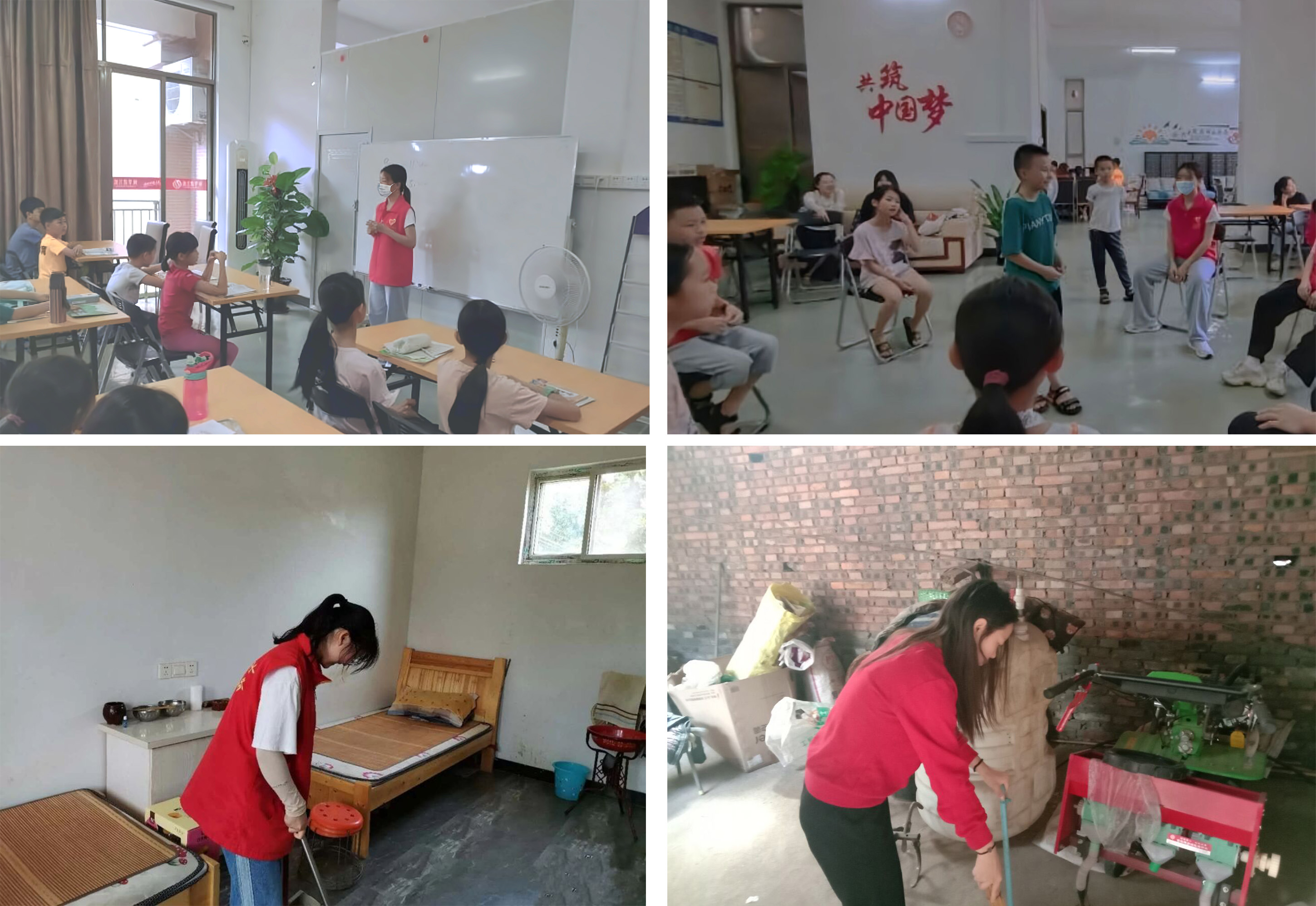 根据村中留守儿童和空巢老人较多的现状,团队主要开展了三方面的实践活动。一是“欢乐学习,健康成长”的支教活动,团队成员结合专业特色,为当地留守儿童提供了丰富的教学课程,如美术课,书法课,植物识别课等,在给小朋友们进行知识拓展的同时减轻了务工家庭的负担;二是“尊老敬老,关爱老人”的志愿服务活动,团队成员帮助空巢老人和贫困户打扫卫生,与老人谈心聊天,带给老人们陪伴与关爱;三是“深入实际,感悟文化”的问卷调查活动,团队成员通过询问调研,充分了解并发掘当地的戏曲文化。