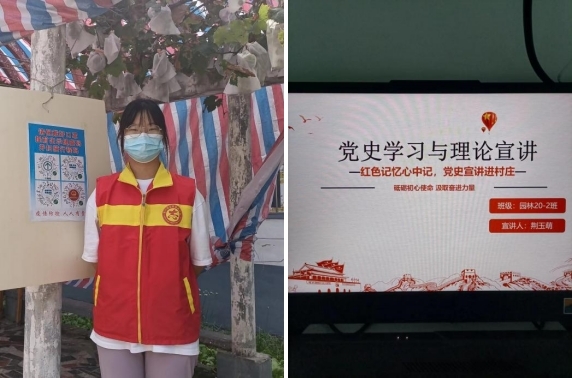 2020级园林专业2班刘佩垚赴淮阳区民生社区的淮阳区实验幼儿园与周边居民开展党史宣讲,讲述国家百年来的风雨历程,让老师更深刻的了解党历史,从幼儿抓起增强学生的党史教育。此外,他还走访了周边居民,讲述中国共产党为了人民的幸福生活所做出的贡献与努力,提升了居民生活幸福感和党史认同感。