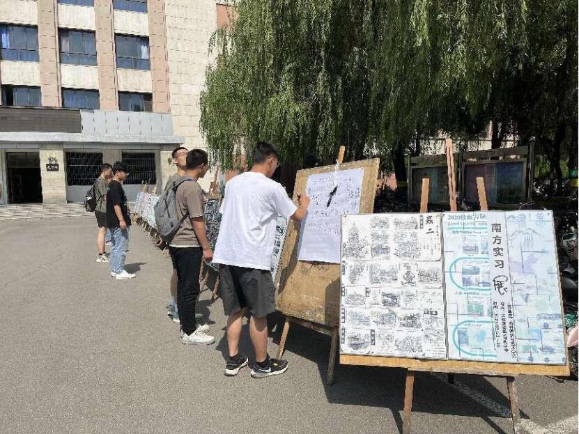 实习结束后,5月22日至25日,小黄书 于文化路校区3号楼前举办实习作品展,展览吸引了众多同学前来参观,通过吸收不同地区风格的传统建筑结合专业知识设计的艺术作品风格,展现了当地历史文化气息,突出了本次南方实习工作使同学们更加深入地了解不同地区,不同类型的园林风格,掌握不同园林的造景手法、工程措施和管理模式等各方面的知识和技能,对学生将孤立的课程知识转化为系统化的专业知识,提升实践能力和对专业行业的认知具有重要的推动作用。
