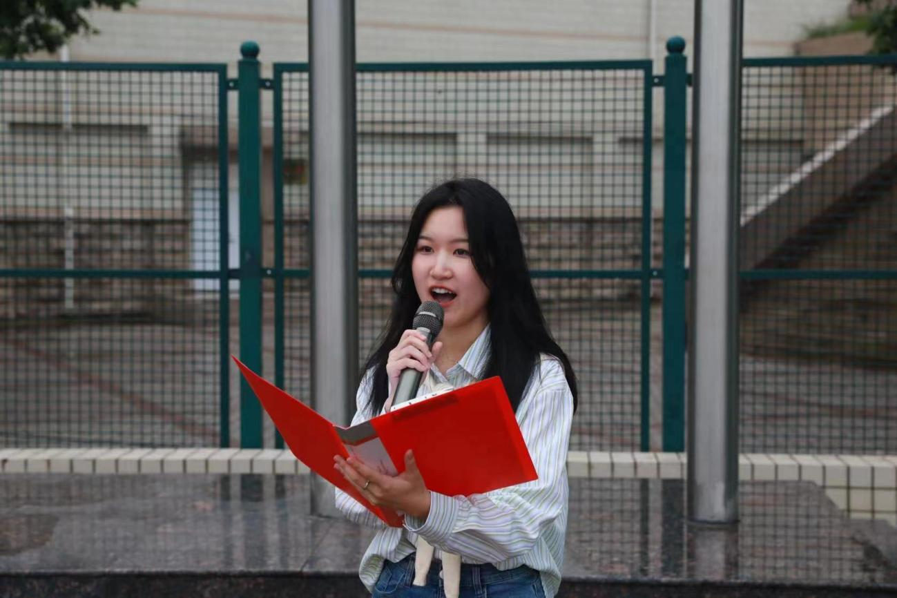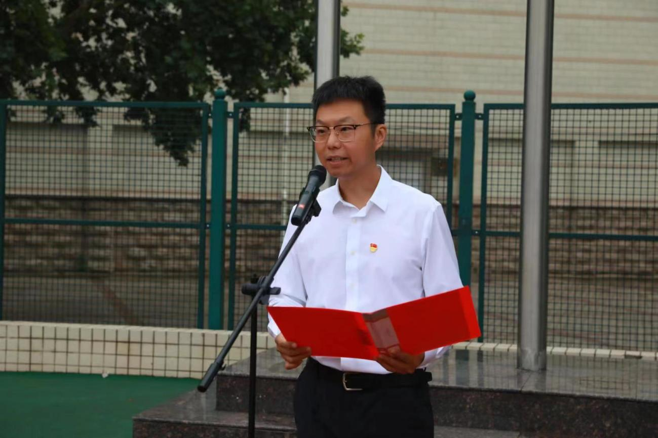 2020级学生代表王宇佳在国旗下发言。她表示,青年大学生要能够肩负历史使命,坚定前进信心,立大志、明大德、成大才、担大任,在中华民族伟大复兴的青春赛道上奋勇争先、贡献自我。随后,院党委副书记赵九阳发表讲话。他对小黄书 师生提出以下三点要求:一是努力掌握科学知识,锤炼过硬本领,努力成长为对社会有贡献有价值的人;二是勇于开拓、敢为人先,保持“初生牛犊不怕虎”的刚健勇毅,涵养“越是艰险越向前”的英雄气概;三是在平凡中坚守初心,在实干中践行使命,做有理想、敢担当、能吃苦、肯奋斗的新时代好青年。