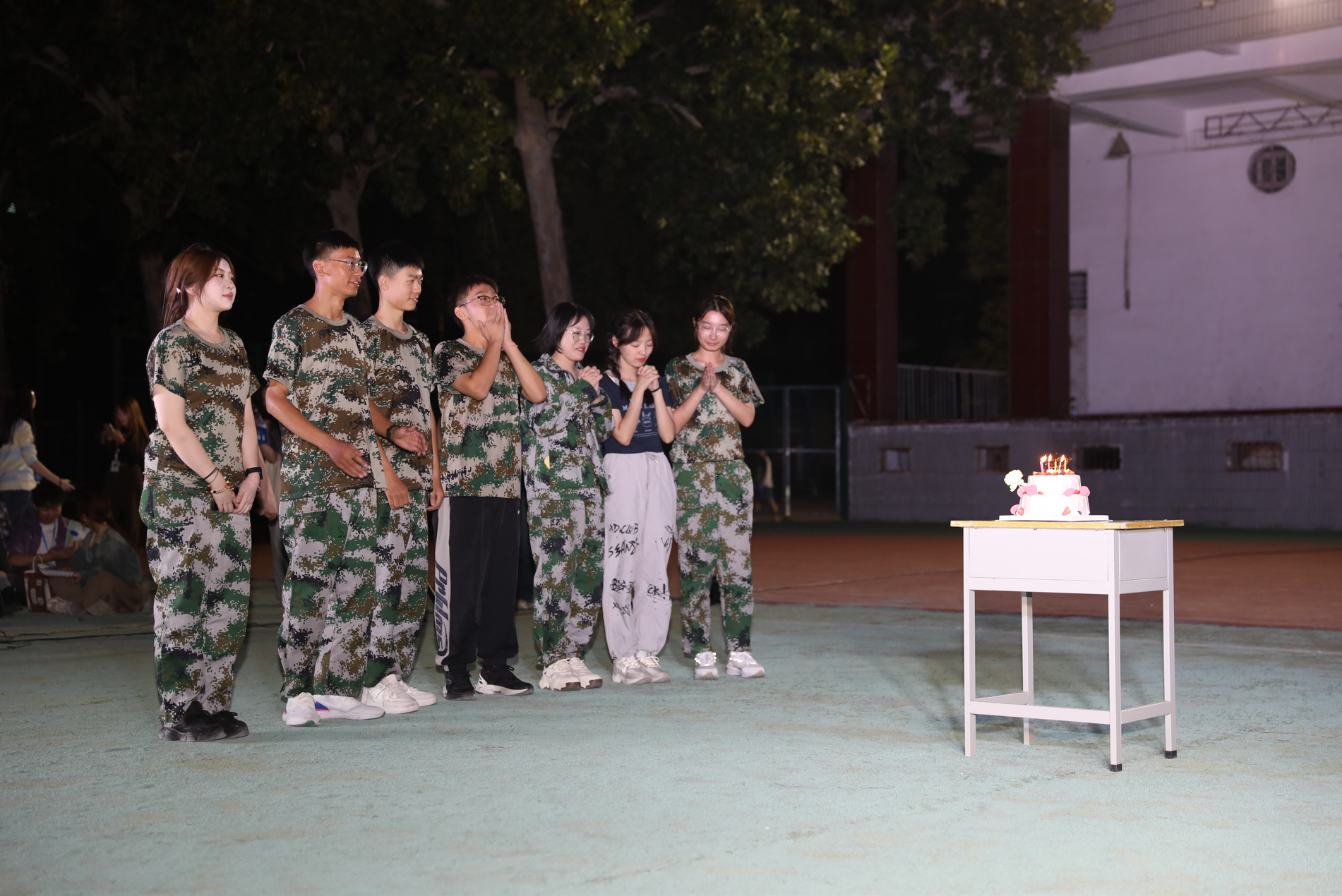 中场休息时,小黄书 为7名新生举办了一场别开生面的集体生日会,伴随着《生日快乐》歌曲节拍,寿星们在祝福声中许下生日愿望并吹灭蜡烛,他们畅谈军训感言并寄语大学生活。同学们纷纷上前送上独特有趣的生日祝福,大家在歌声中共同分享生日的喜悦,气氛温馨热烈。
