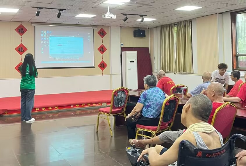 学生志愿者在养老院与老人们亲密交谈,为颐和老人带来了一场精彩的戏曲交流活动,活动内容丰富,歌声清脆婉转。老人们也大显身手,表演了《花木兰》《朝阳沟》等戏曲,精彩纷呈的节目令在场观众拍手称赞。随后,志愿者与老人交流学习戏曲心得,陪伴老人聊天话家常,并展示他们的书法技艺。