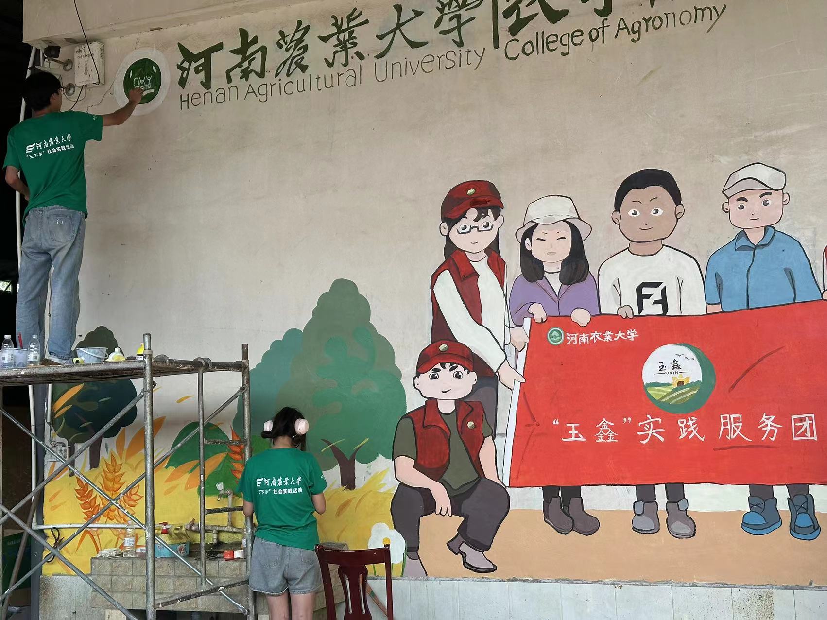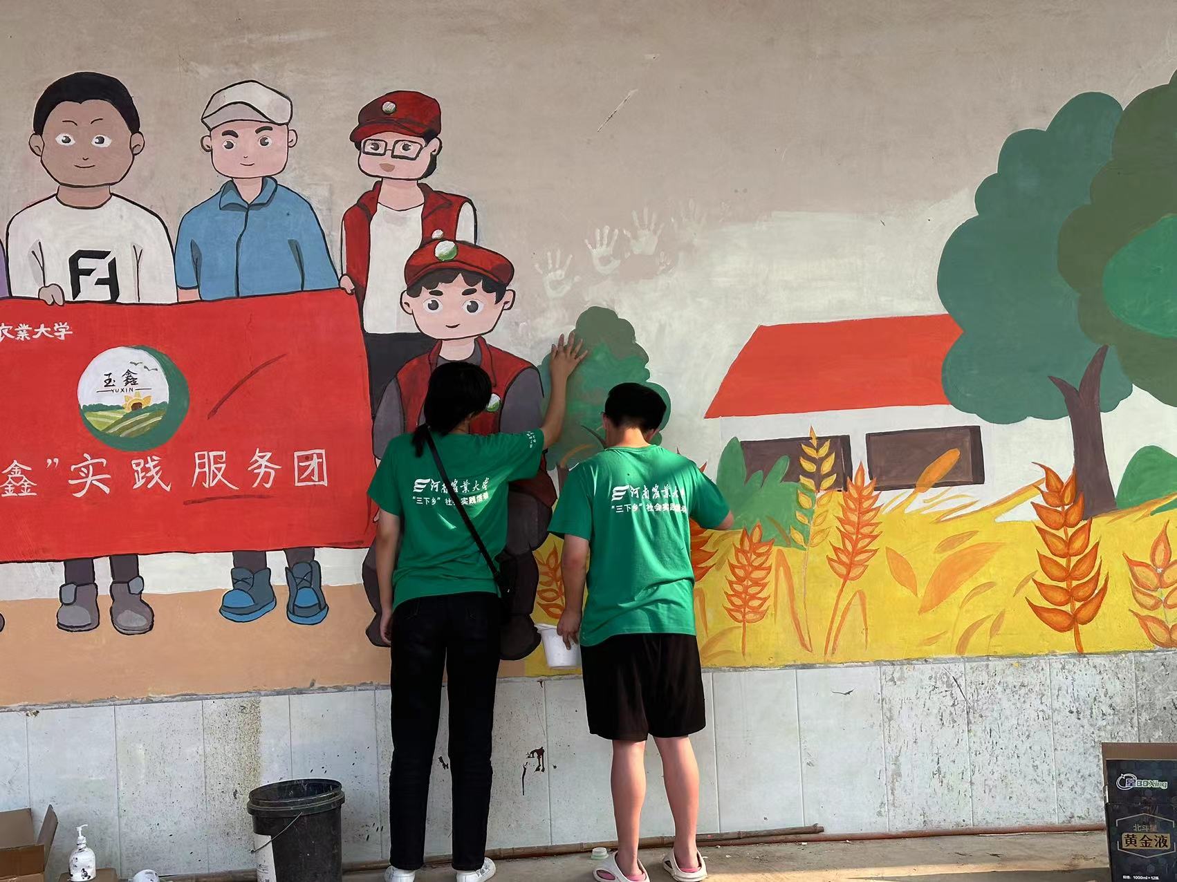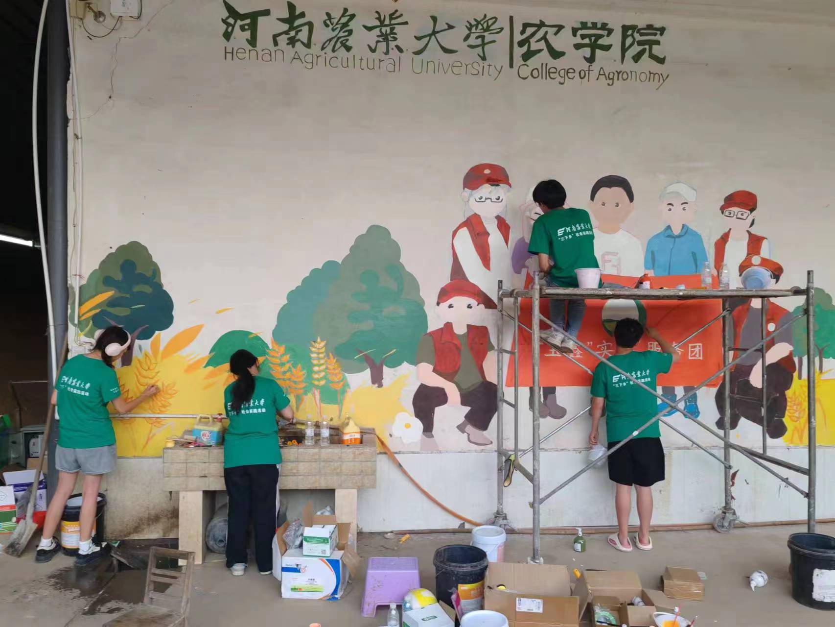 经过全体成员为期四天的精心设计、反复打磨、共同协作后,科技小院的墙绘已基本完成。团队成员将现代农业科技与乡村的自然风光、人文特色相融合,用艺术的方式描绘了农田的智能化管理、农业科技的广泛应用等场景,巧妙地将科技元素融入传统绘画中,创作出了一幅幅栩栩如生的墙绘作品。图文并茂的墙绘,易于被村民接受,提升了村庄的整体美观度,进一步提升了群众的获得感和幸福感。