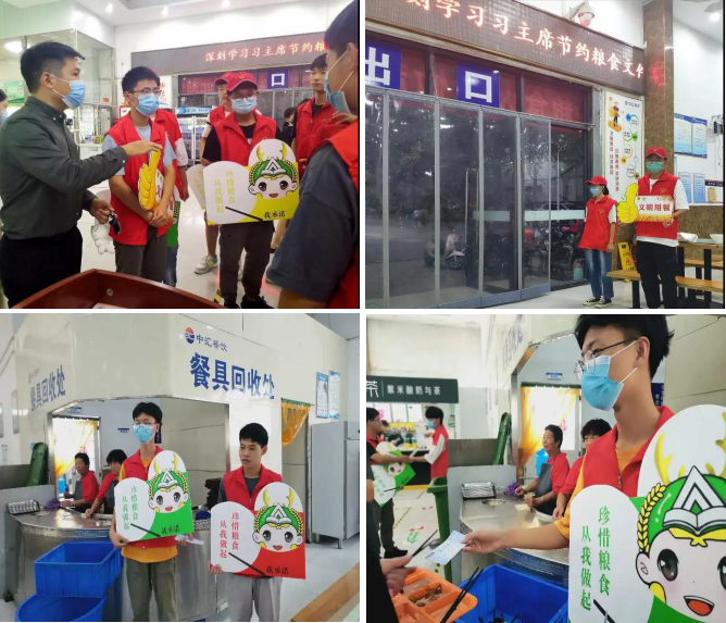 活动开始前,院团委老师李雨澍在活动现场对志愿者的工作进行强调与安排,志愿者们认真地聆听老师的指导,并进行相关准备工作。在餐厅门口,宣传人员手举“提倡节约粮食、文明就餐”的宣传引导牌,对进出食堂的学生进行宣传教育。在餐具回收处,持红牌的警示人员对留剩饭的同学进行再次宣传,让其在承诺牌上签字拍照,持绿牌的奖励人员负责带领不留剩饭的同学前往指定地点领取礼品,发放一张一元餐厅代金券,凭借这个卡片在一餐厅进行消费时可享受一元优惠,后期还会有签字笔等奖励。