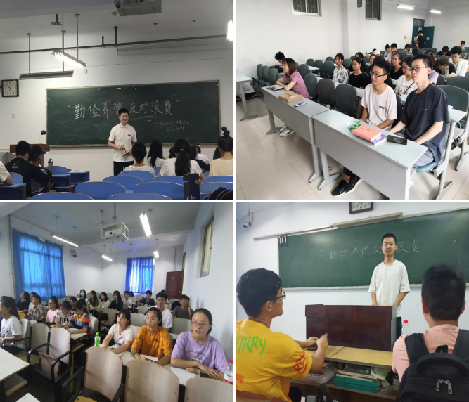 此外,小黄书 还组织班级开展相关班会,带领学生深度了解学院“勤俭养德,反对浪费”主题活动的有关内容。班级学生以新时代优秀大学生的身份,纷纷表达了自己的班会感想。2018级产品设计1班张鑫认为节约粮食这个话题是我们从小学就已经学到的基本文明行为,做到这点是对劳动人民的基本尊重也是彰显文明传承优秀文化传统的提现之一,我们应该从自身做起,积极宣传,杜绝浪费。2019级城乡规划2班林予欣表示食堂新开了一些新窗口,种类丰富,同学们浪费食物的现象有所减少,希望学校食堂可以考虑一下设置大、小份的参量,避免造成不必要的浪费。