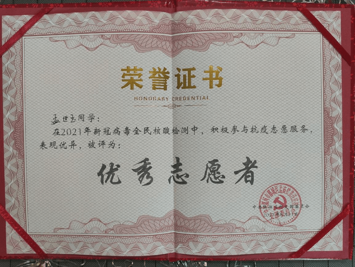 他迅速响应村委会号召,投身防疫工作一线,协助村干部开展体温检测和疫情防控知识宣传。同时,孟世玉还利用工余时间编写村民防疫传单和积极给村民普及相关知识,受到村民好评和漯河市文明办的肯定。志愿期间,他认真对待工作,尽职尽责地做好防疫前线的工作。他表示,坚持做好疫情防控常态化的工作,这是一件关乎每个人健康的大事,自己作为一名新时代青年也想贡献一份力量。
