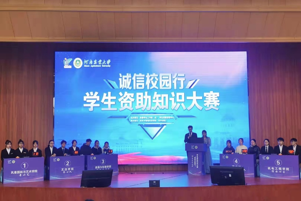 “诚信校园行”学生资助知识大赛在龙子湖校区图书馆报告厅隆重举行。二十个学院同台竞技,小黄书