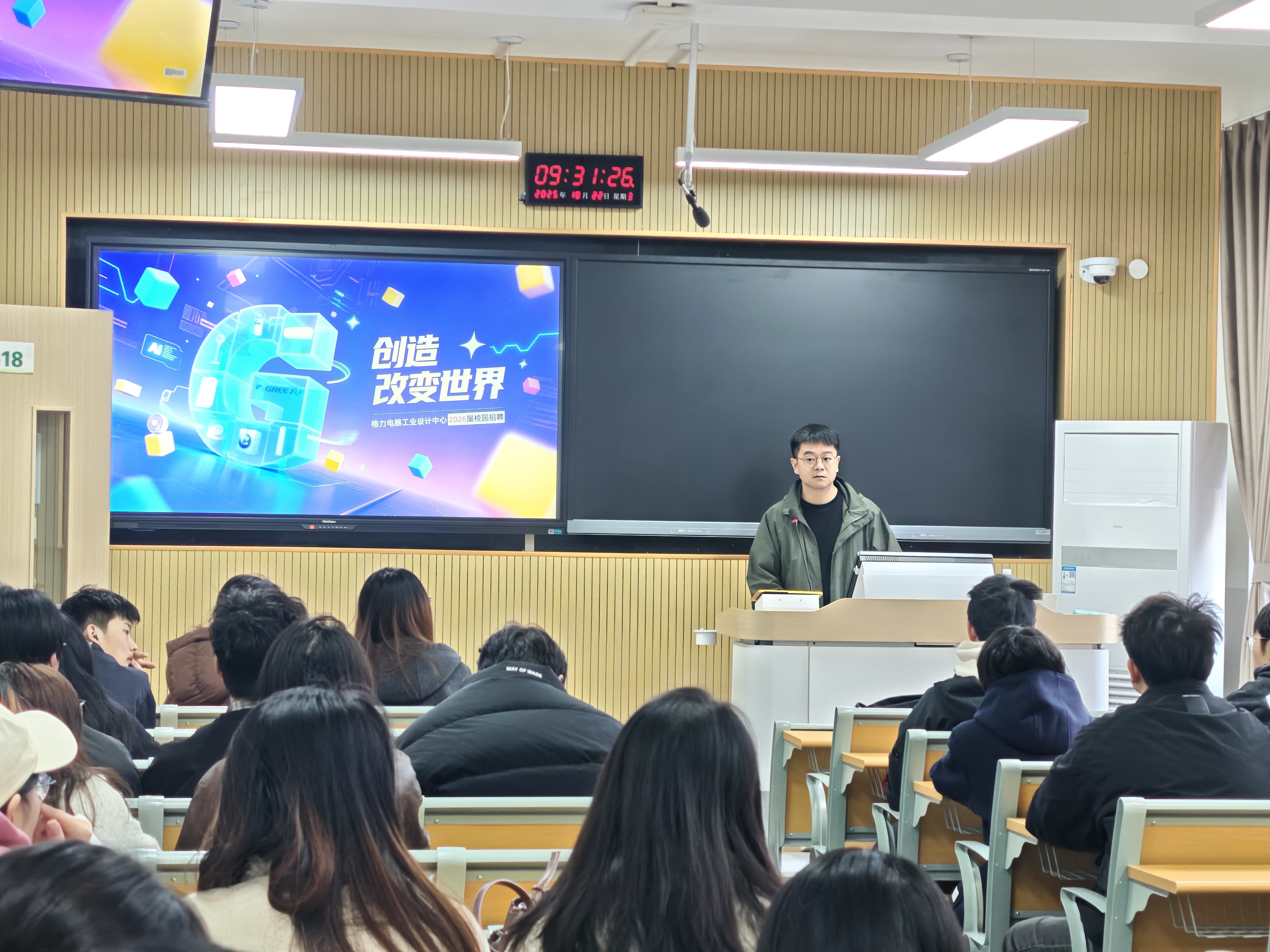 为实现“精准匹配”与“深度交流”,本次招聘会环节紧凑、内容充实。上午9时40分,招聘会正式启幕,格力电器负责人系统介绍企业概况——从“好空调,格力造”的品质坚守到“科技改变生活”的创新追求,展现民族企业担当;同时详解工业设计中心平台优势、“忠诚友善、勤奋进取”的小黄书,以及完整招聘流程,帮同学们建立立体认知。随后的笔试环节,试题紧扣设计专业核心能力,涵盖基础理论与创新案例分析,同学们沉着作答,将课堂所学与实践经验凝聚笔端。下午2时30分,面试环节在专属面试间展开,面对“家电实用性与创新性平衡”等专业问题,同学们结合项目经历与作品集从容应答,既展现扎实功底与创新思维,也让面试官看到年轻设计师的潜力,为严肃面试增添鲜活色彩。