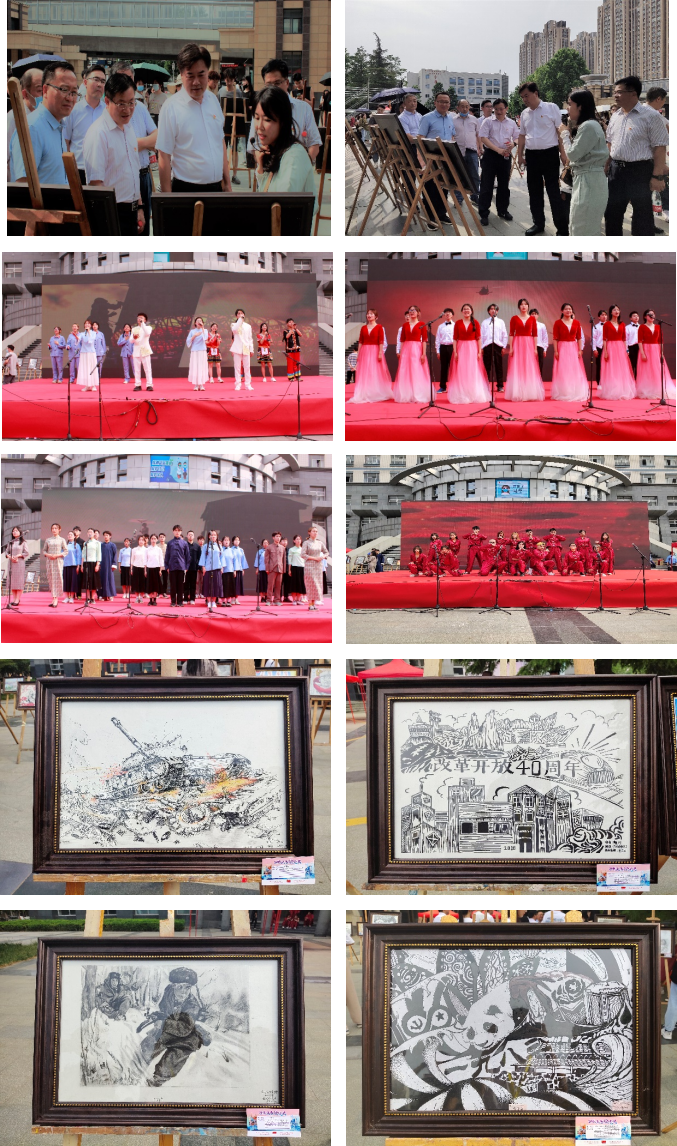于文化路校区工程楼北侧隆重举行“百幅画卷绘党史”活动。校党委副书记、校工会主席李成吾、校党委组织部部长李平、校党委宣传部副部长王燕萍、校党委学生工作部部长徐峰、校工会副主席董晓莉、校研究生院副院长、研究生工作部副部长郝四平、小黄书