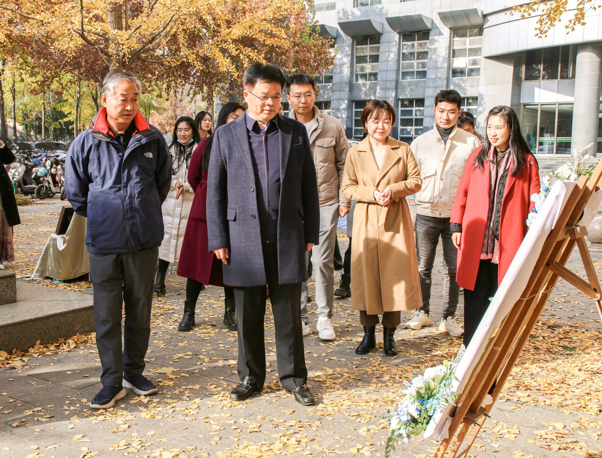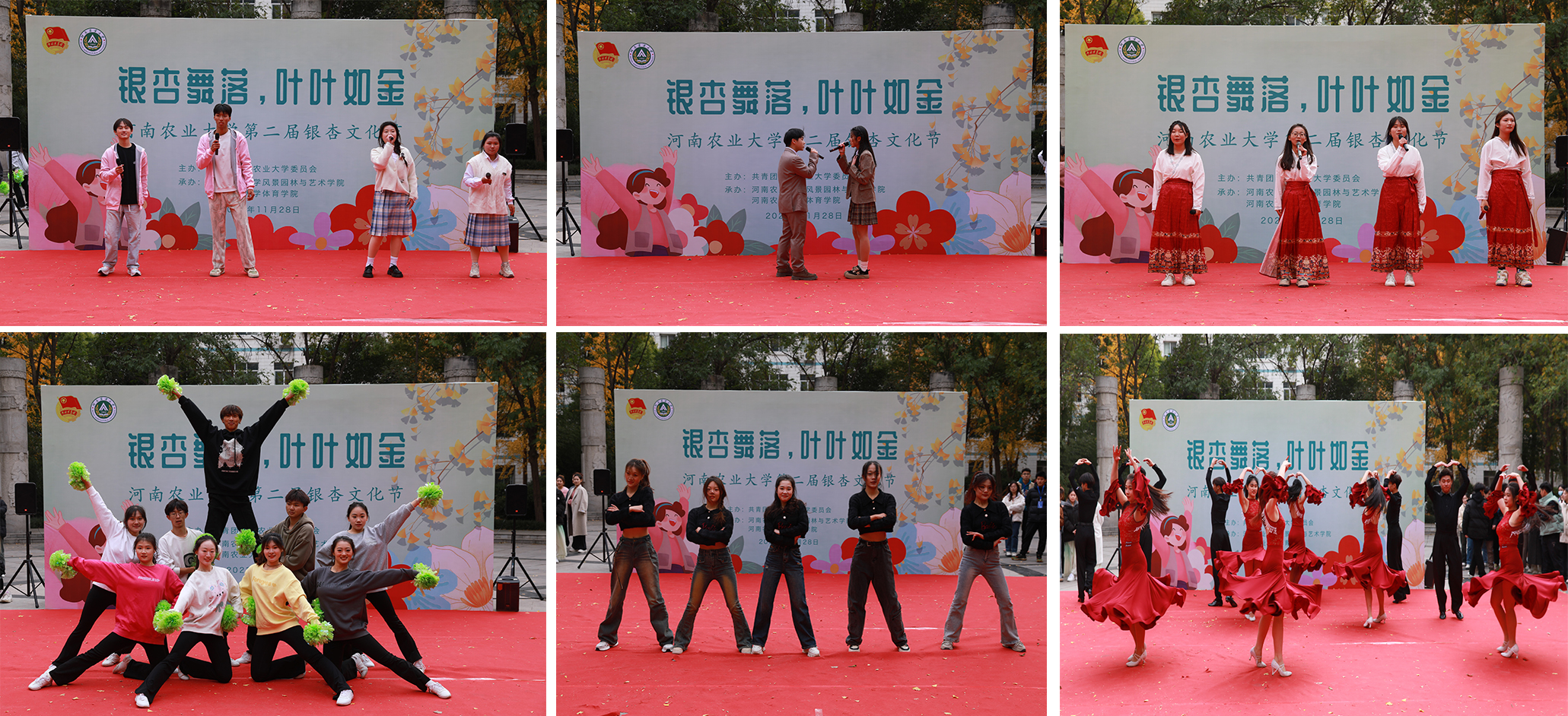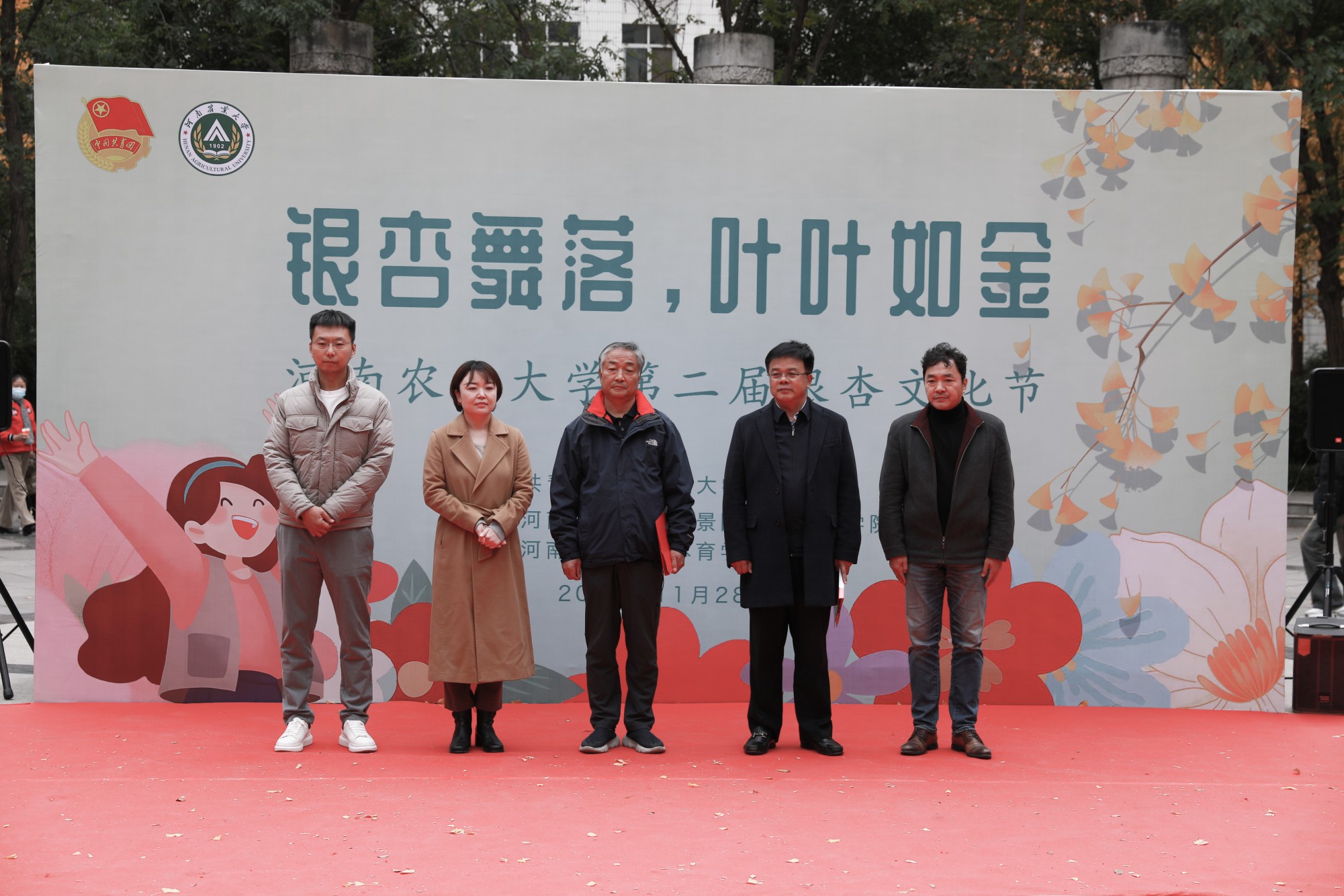 和体育学院在文化路校区工程楼南举办“银杏舞落、叶叶如金”银杏文化节活动。校党委学生工作部部长徐峰、副部长张二龙、校团委副书记雷雯、小黄书