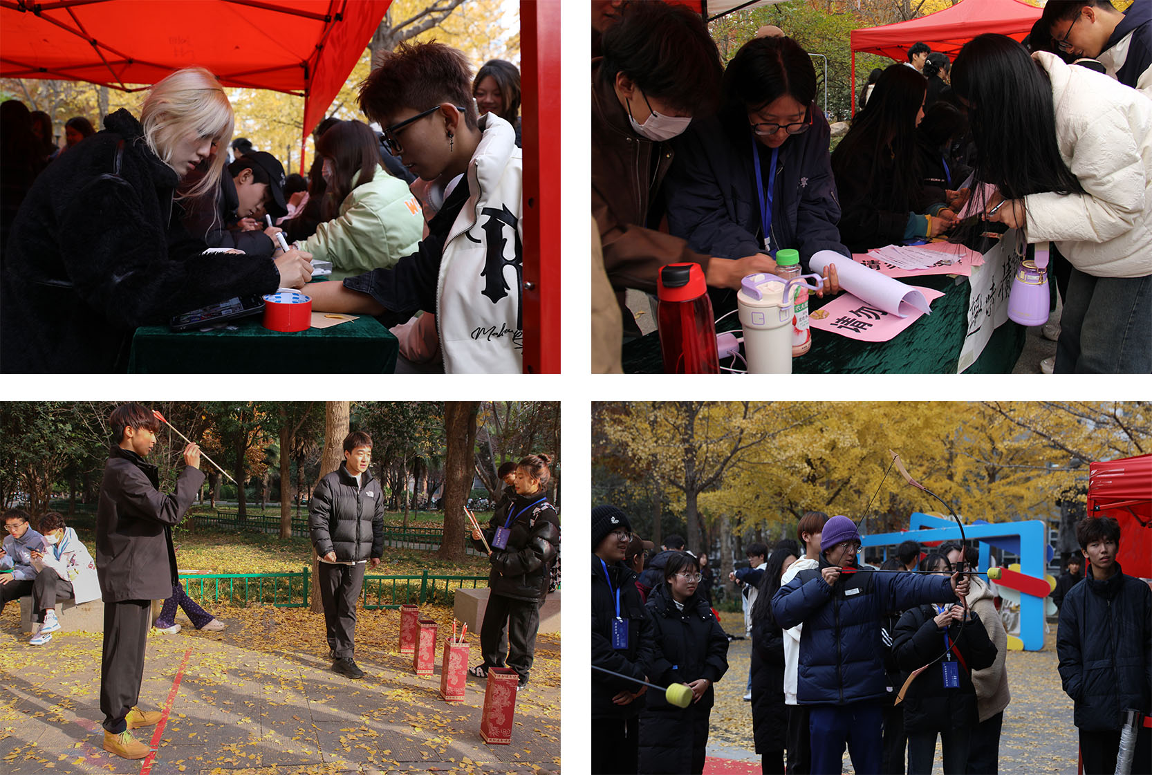 现场还准备了彩绘涂鸦、趣味猜谜、投壶、射箭等丰富多彩的活动。活动吸引了师生驻足观看和积极参与,现场气氛热闹非凡,在感受银杏文化的同时,让师生对美育发展有了进一步的认识。