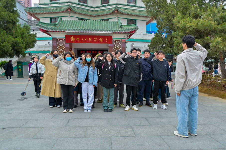 在二七纪念塔前,学生们胸戴党徽、团徽,表情庄重,列队整齐,全体党员重温入党誓词、肃立默哀。宣誓仪式结束后,进入二七纪念馆参观学习,通过回望过去,更加意识到新时代大学生肩负的责任,上了一场行走的红色“大思政课”。