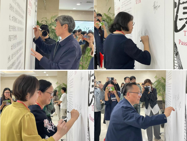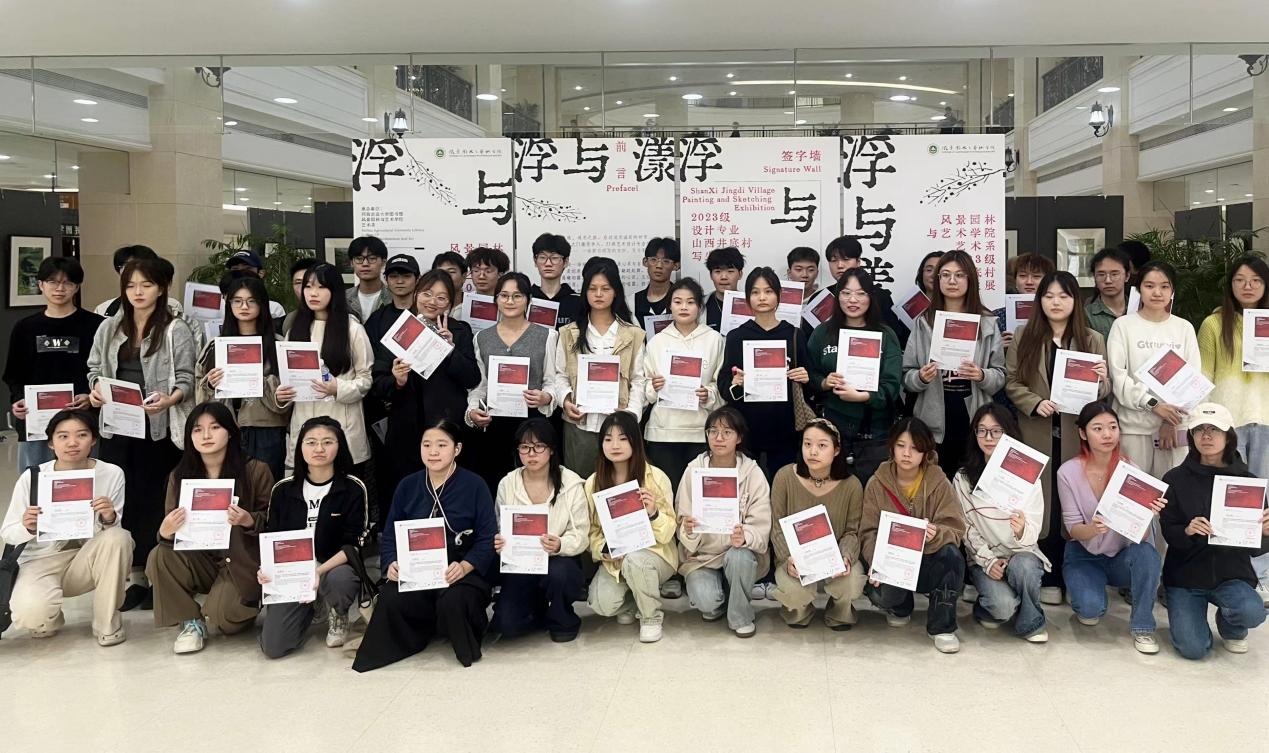 艺术系2023级山西井底村写生展正式开幕!现场气氛推向高潮,掌声如雷。在热烈的氛围中,领导嘉宾为参展学生颁发了入选证书并合影留念。最后,在学院领导和老师的引导下,嘉宾在签名墙上留下签名,并一同参观了此次画展。