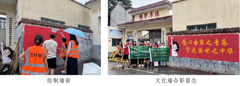 盘阳村的学校外墙上,志愿者们清理修复墙面,挥动画笔,让斑驳墙体重焕生机。