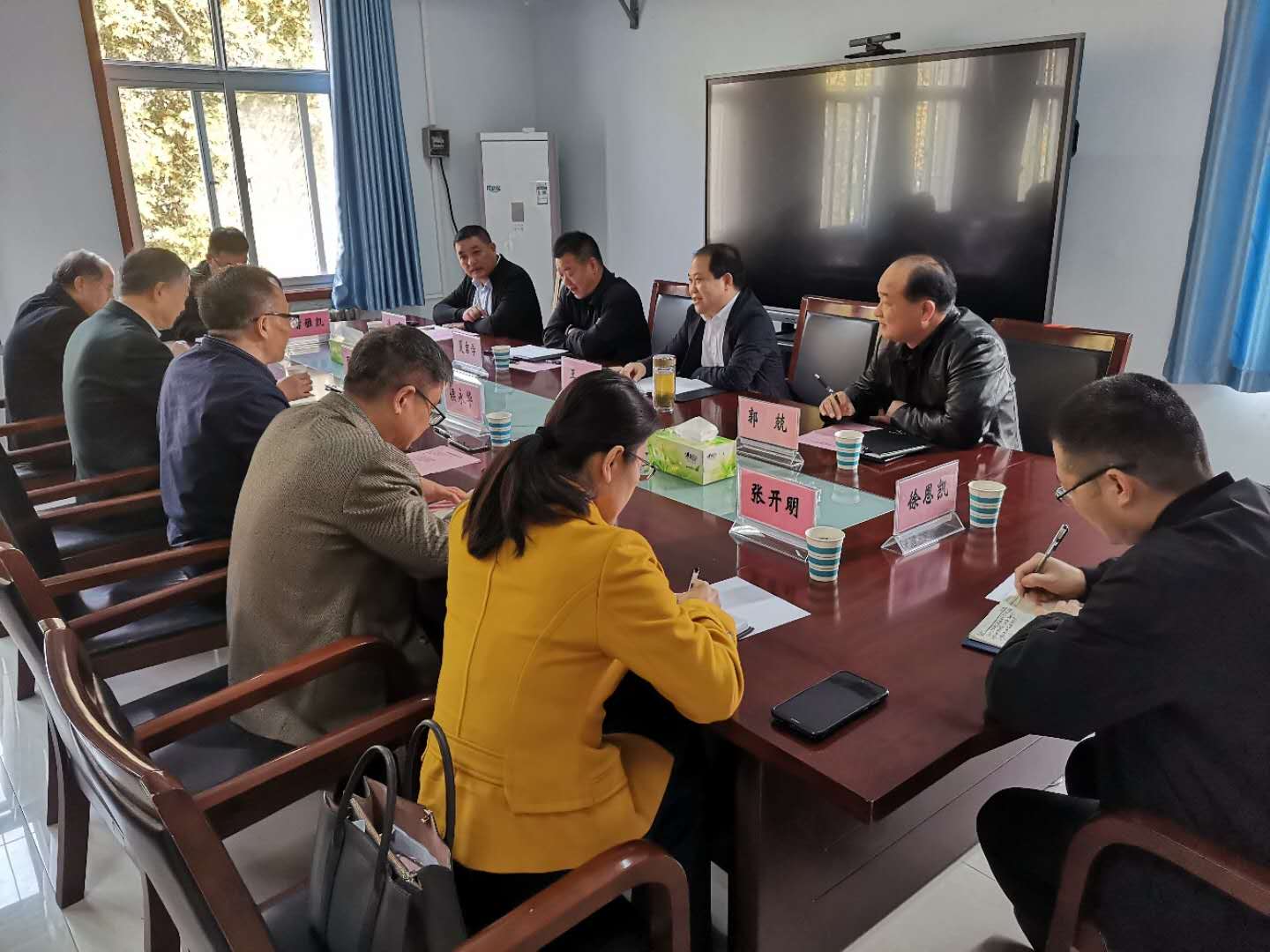 田国行向来宾介绍了学院学科发展、平台建设、特色优势、院地合作等相关情况,并结合固始县实际情况在城市规划、景观绿化、市容市貌等方面给出了科学可行的建议。阴予兴就进一步加强双方合作、落实调研座谈成果给出了建议。