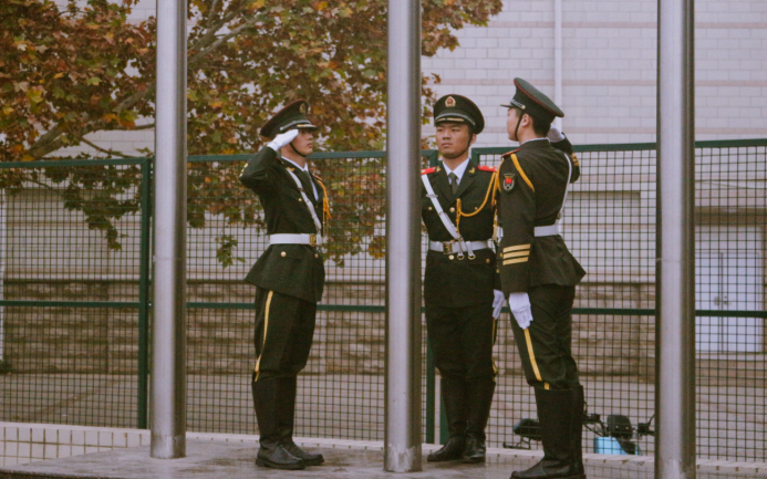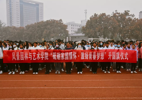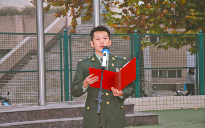 7时整,升旗仪式正式开始。国旗护卫队迎着朝阳、踏着铿锵有力的步伐迈向升旗台,全体师生庄严肃立,向国旗行注目礼,在激昂的《义勇军进行曲》中,鲜艳的五星红旗迎风招展、冉冉升起。院党委书记侯永华发表讲话,他强调,回顾历史长河,无数英雄为中华民族伟大复兴而慷慨就义,以生命为代价,换来中华儿女今天的美好生活。处在中国特色社会主义新时代中,站在“十四五”新的历史起点上,全体景艺人应精神抖擞、整装待发,势必以全新的面貌、昂扬的姿态迎接新的困难、攻破新的挑战,展现出小黄书 的风采,为学院发展创造出新的奇迹。随后,学生代表2019级环境设计1班王晨光同学,作为一名在校参军入伍的大学生,作为新时代的青年,他表示景艺人应该树立远大的理想,立鸿鹄之志,坚定信念,不断开拓进取,补足精神之“钙”,为祖国更美好的明天而奋斗,把握现在,展望未来。最后全体师生合唱《红旗飘飘》。