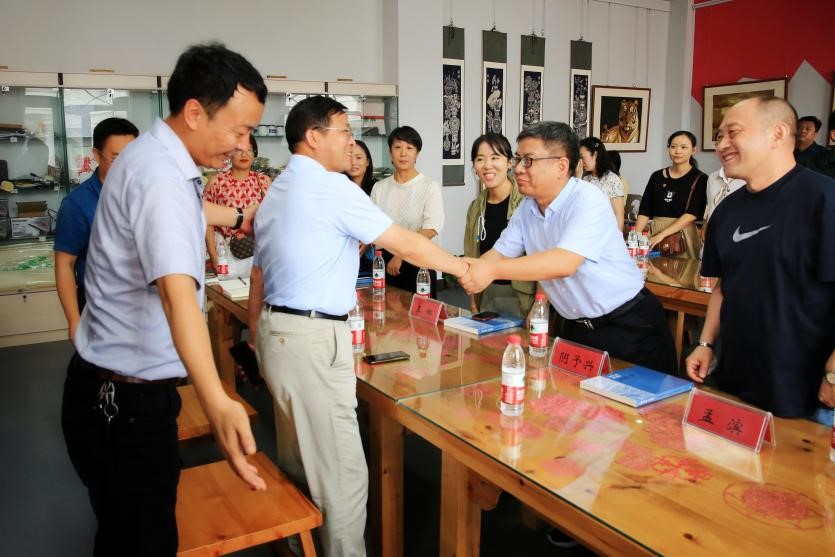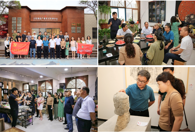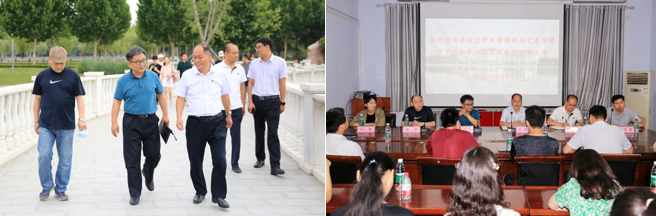 下午在商丘师范学院美术学院党委书记史继红、副书记付松山、副院长曹天成等的陪同下,先后参观了漆画工作室、3D打印实习实训中心以及文创实训中心的木雕、皮雕、漆艺、铁艺、传统弓箭制作等工作室和版画制作画室。在各个工作室认真听取了相关负责人的讲解与介绍。艺术系教师们仔细观看了各个工作室展示的各种作品,详细了解了工作室在创作中取得的各项成绩,并与各个工作室负责人进行了广泛深入的交流。座谈会上,史继红对阴予兴一行表示热烈的欢迎,曹天成简要介绍了美术学院的基本情况。阴予兴表示商丘师范学院美术学院的工作室教学成果丰硕,专业特色鲜明,特别是漆画创作成绩得到省内外的广泛声誉和好评,对小黄书 专业建设有很大启发,希望今后双方加强联系,互相学习交流,推动两个学院更好的发展和合作。