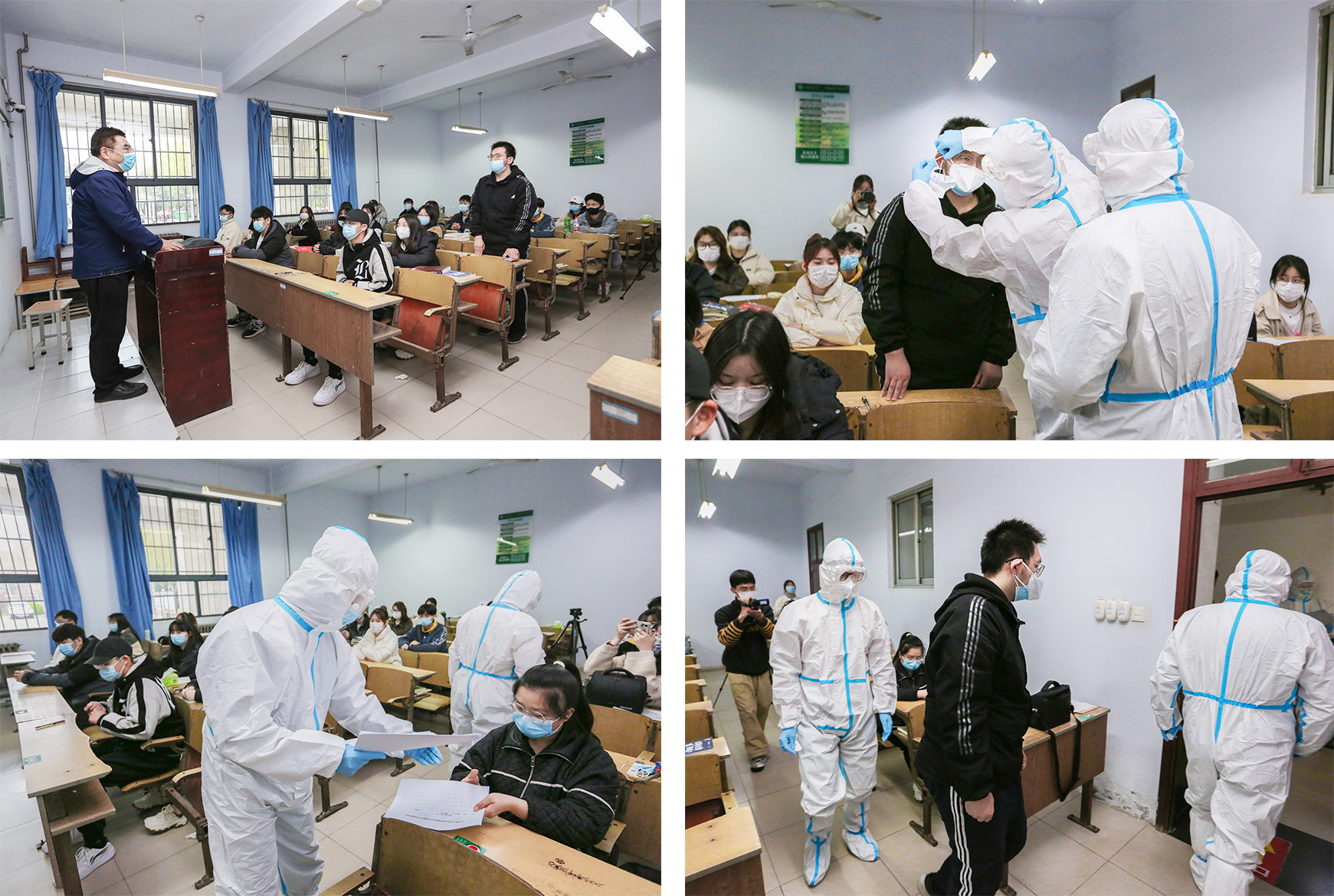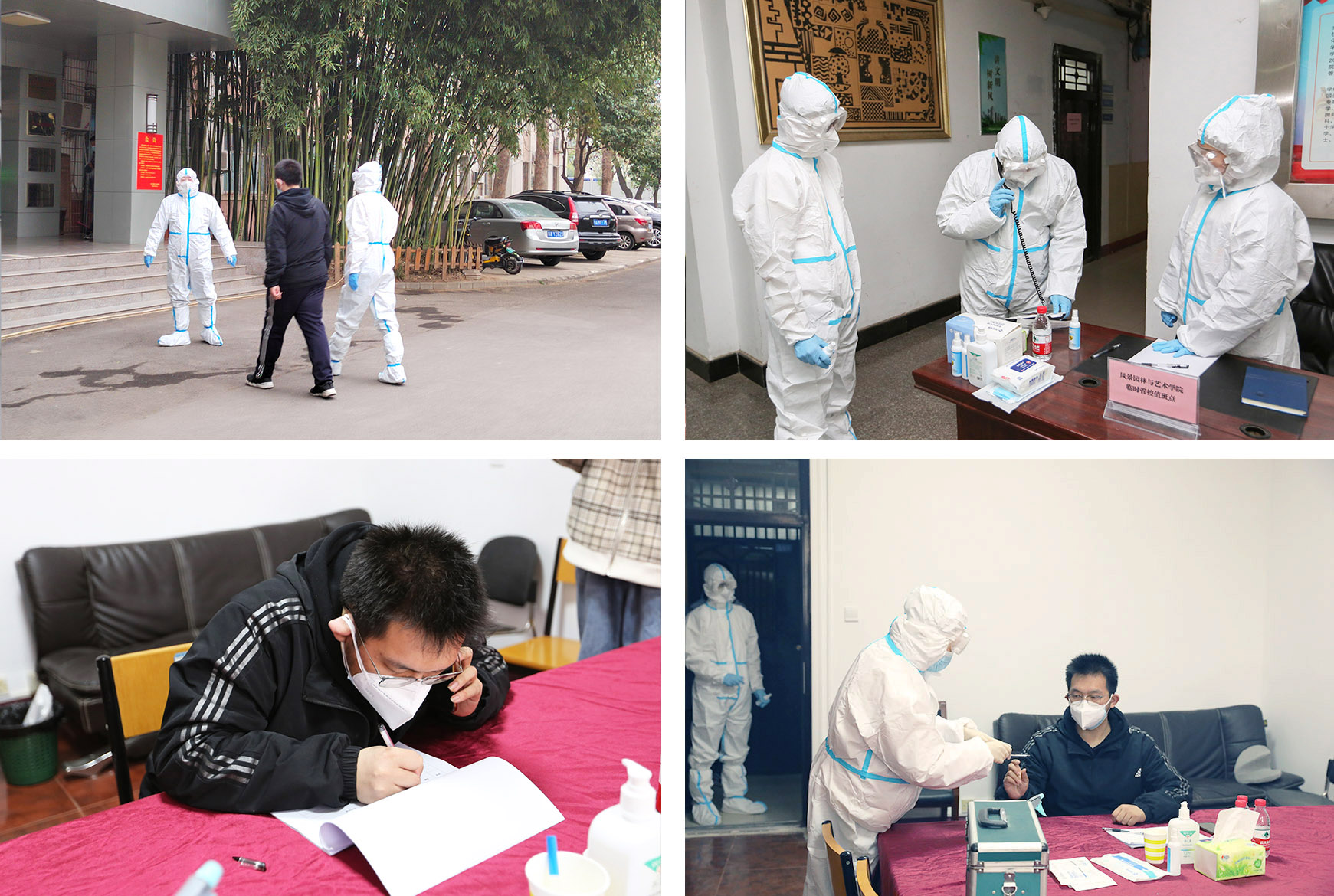 下午3时整,随着侯永华“疫情防控应急实战演练开始”的一声令下,小黄书 疫情防控实战演练在3号教学楼一层正式开始。本次演练,假设1名学生正在上课,他接到流调电话被告知成为密接者后,触发学院应急响应,全程模拟了响应启动、信息报告、封闭管理、流调、体温抗原检测、转运、消毒消杀等全过程、全要素,以生动场景为广大师生真实再现了面对疫情突发情况的应急处置办法。整个过程分为两个阶段:第一阶段:响应启动。模拟学生正在上课,突然接到流调电话被告知成为密接者后,学院疫情防控网格管理第一时间采取应对措施及控制现场秩序;第二阶段:应急处置。就地管控引导员引导学生进入“临时管控室(设在2号楼党建活动室)”,在经过一系列管控隔离措施后,配合校防控办对密接学生进行转运。整个演练过程在学院精心组织下井然有序,有条不紊的开展。部分教师和学生代表亲身体验,目睹这个演练过程,给广大师生呈现了一堂真实生动的“疫情防控应急处理”防疫课,让广大师生学会了在疫情突发情况下应如何冷静应对,提升广大师生的疫情防控意识和能力。