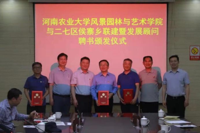 随后,全体党员共赴二七区侯寨乡。在乡党委、政府主要负责同志的陪同下,大家实地查看了全垌、台郭两个社区村容村貌,详细了解了社区产业发展、人口数量、土地现状等情况,详细了解了社区产业发展、土地利用以及环境保护等现状问题;并来到尖岗水库大坝查看了库区水文监测、防汛功能、环境保护等情况。最后,在乡政府召开了校地联建工作座谈会,全体党员与乡村干部就如何有效利用生态资源、合理使用集体土地、快速实现村民“市民化” 乡村发展关键问题进行了深入的探讨,并在引智、引才、合作共建等方面达成了多项共识,为进一步加强校地合作,推动乡村振兴奠定了基础。同时,侯寨乡聘请小黄书 为发展顾问团,并向院长田国行、副院长阴予兴颁发发展顾问证书。