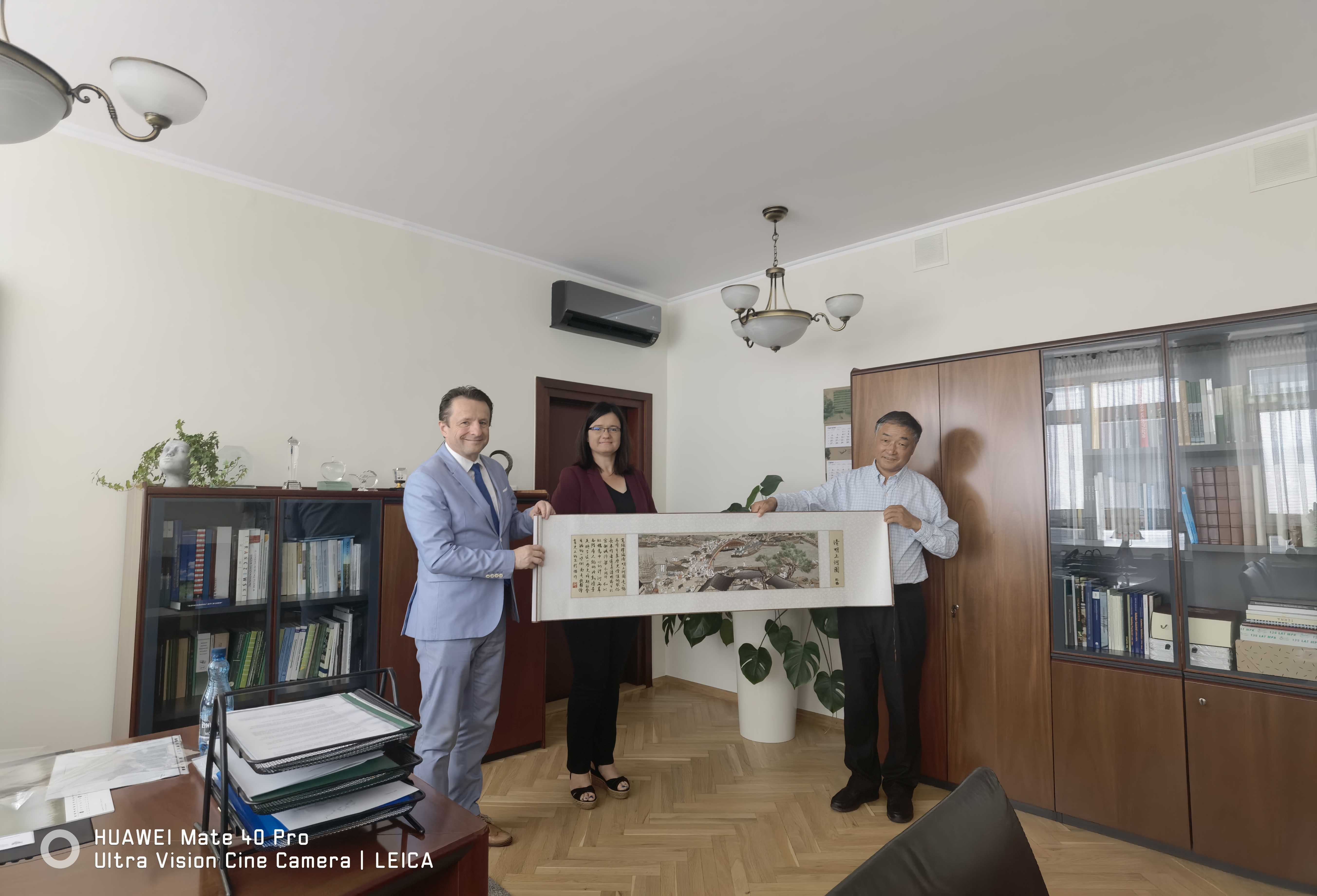 Krzysztof首先就此次田国行率队代表小黄书 参加第三届生态与环境工程国际科学会议,担任学术委员会委员并做大会主旨报告表示衷心感谢。他指出,报告全面深刻介绍了中国大尺度、高强度、超高度的城市化过程特点及高密度人居环境特征,讲述了古代洛阳城市选址与空间布局的生态智慧,参会嘉宾对城市绿色基础设施规划建设与调控遵从“三域四态”的核心理念表示高度认可,对汇聚东西方智慧,共同探索解决中国城市化过程中的生态难题表现出浓厚兴趣。他期待双方在风景园林、城乡规划、环境生态等多学科领域开展更广泛合作,就科研团队建设,教师互访交流,本硕双学位教育等方面开展探索。