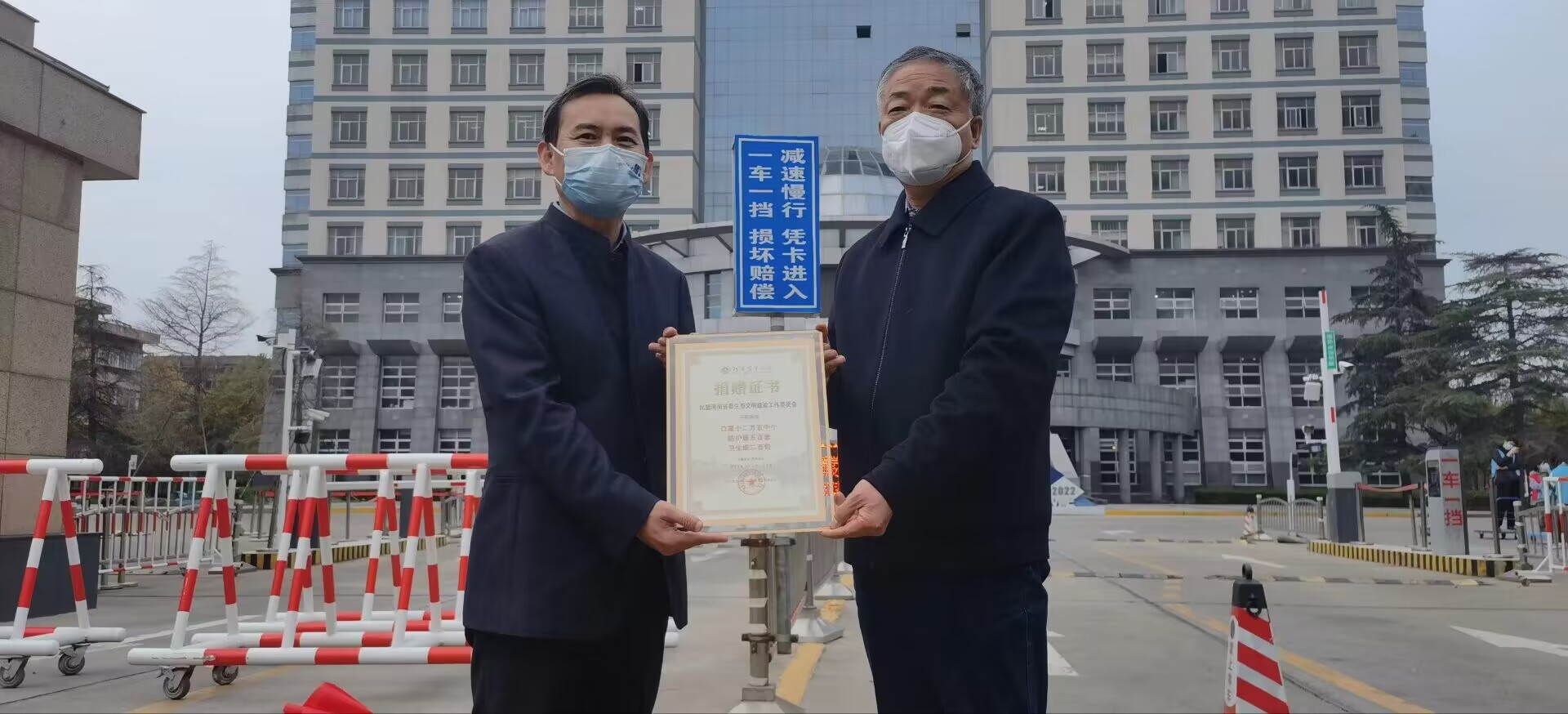 捐赠了50箱口罩、400套防护服等防疫物资,捐赠仪式在文化路校区北门举行。民盟河南省生态委员会主任阴三军,我校校友联络办公室主任胡明忠,小黄书