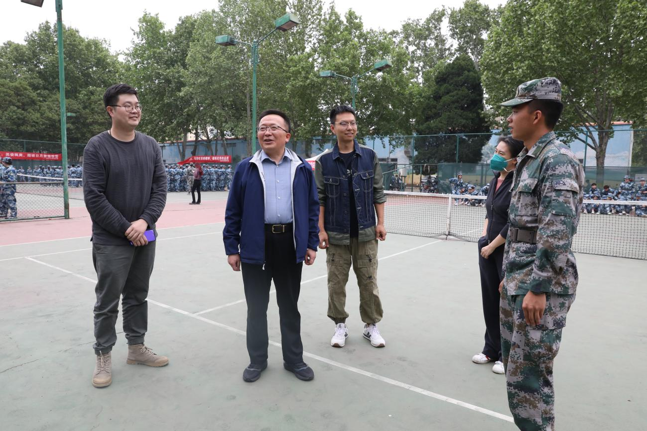 为及时了解和解决军训过程中遇到的问题和困难,全力做好后勤保障工作,4月17日下午,院党委书记侯永华、党委副书记赵九阳、院团委书记徐珂到军训现场视察2022级新生军训工作开展情况。
