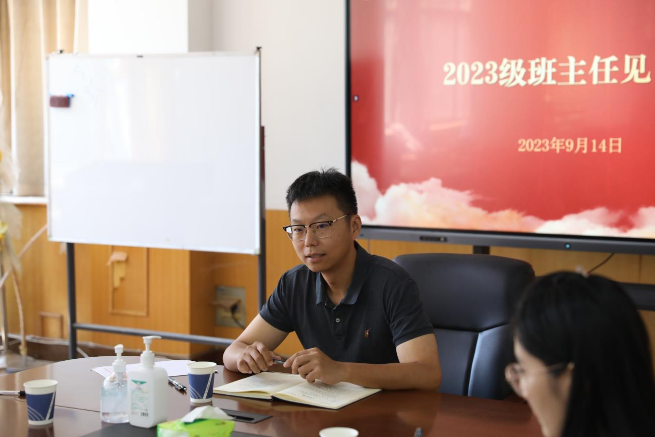 于13号楼二楼第一会议室召开2023级本科新生班主任工作会议。院党委副书记赵九阳、正科级组织员李雨澍、院团委老师周子涵出席会议,全体新生班主任及助理班主任参加会议。会议由院党委副书记赵九阳主持。
