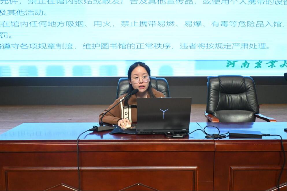 会上,王赢从学校图书馆发展历程、规章制度、空间布局、设备使用方法、图书借阅流程等方面内容进行详细介绍。鼓励学生在课余时间多走进图书馆,充分利用图书馆丰富的资源来开展学习和研究,不断提升自身能力。培训期间,学生们认真聆听,不时鼓掌喝彩,会场气氛轻松融洽。