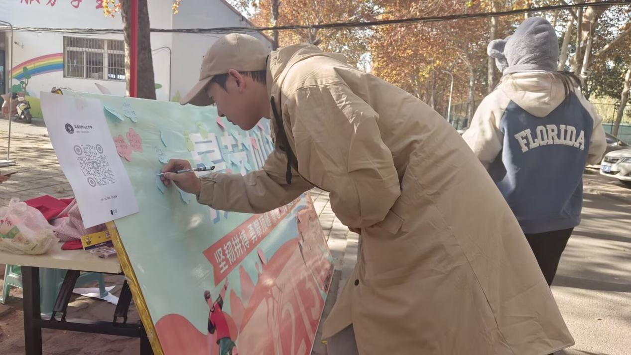 雷锋站在文化路校区一食堂门口举办“共创关爱,用绘板传递爱心”主题国际残疾日活动。