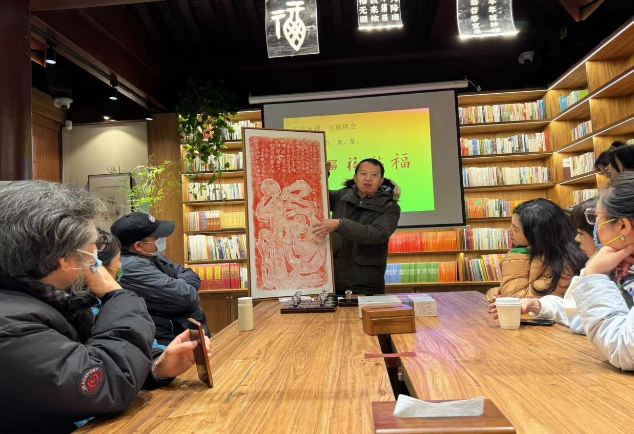 本次调研由蓝夏景观——湛蓝文化的主创人之一、文化空间福文化创意设计者米戈老师为学生们深入浅出地讲解了郑州城隍庙“福”文化的历史发展脉络和多样展现形式。不仅详细介绍了“福”文化的起源和演变,还分析了它在传统文化中的具体体现和应用,让学生们对“福”文化有了更深刻的理解。随后师生参观了书院,参与了“福”文化创意体验活动,对城隍庙福文化进行充分调研及交流,为设计找灵感。