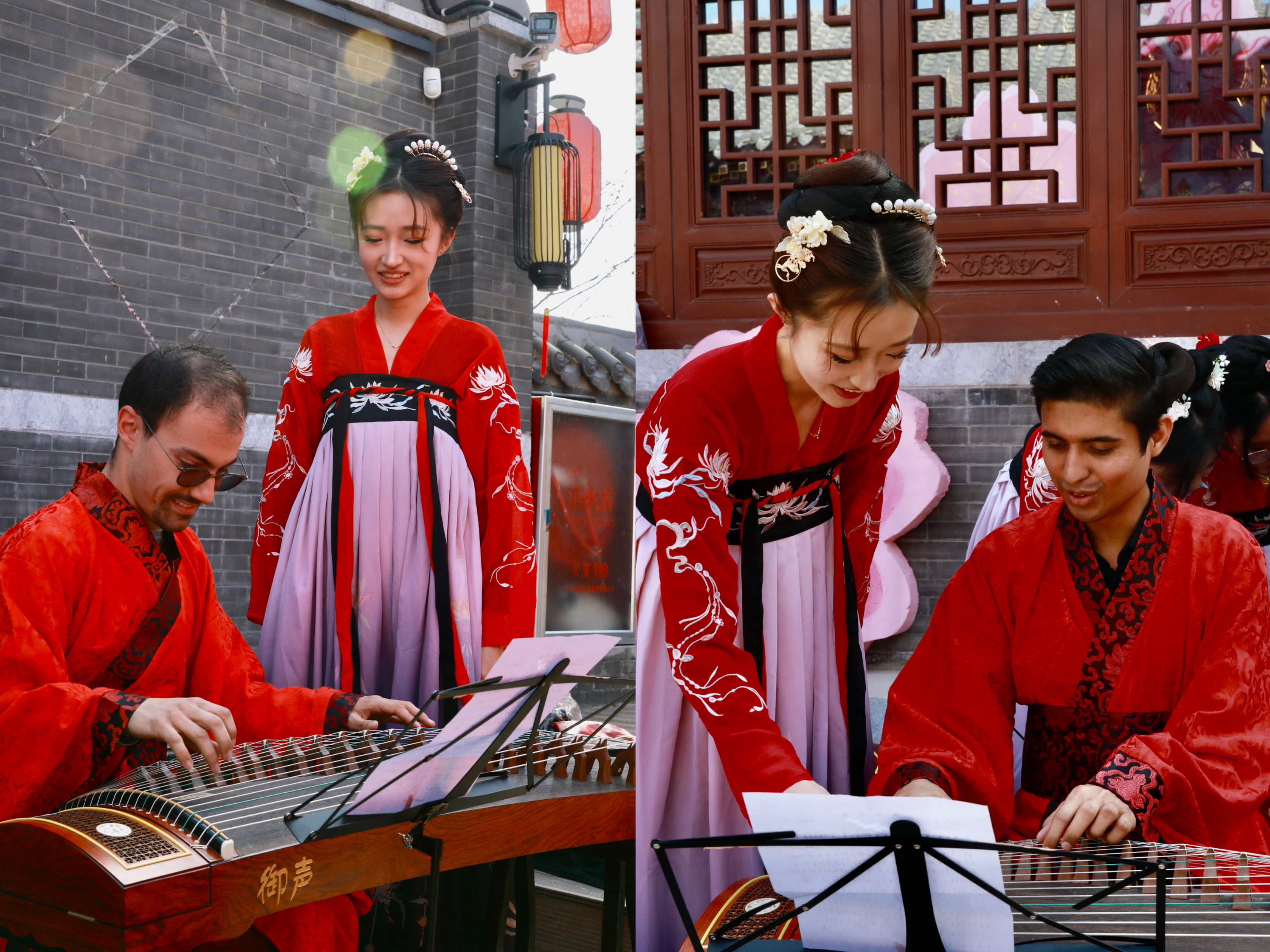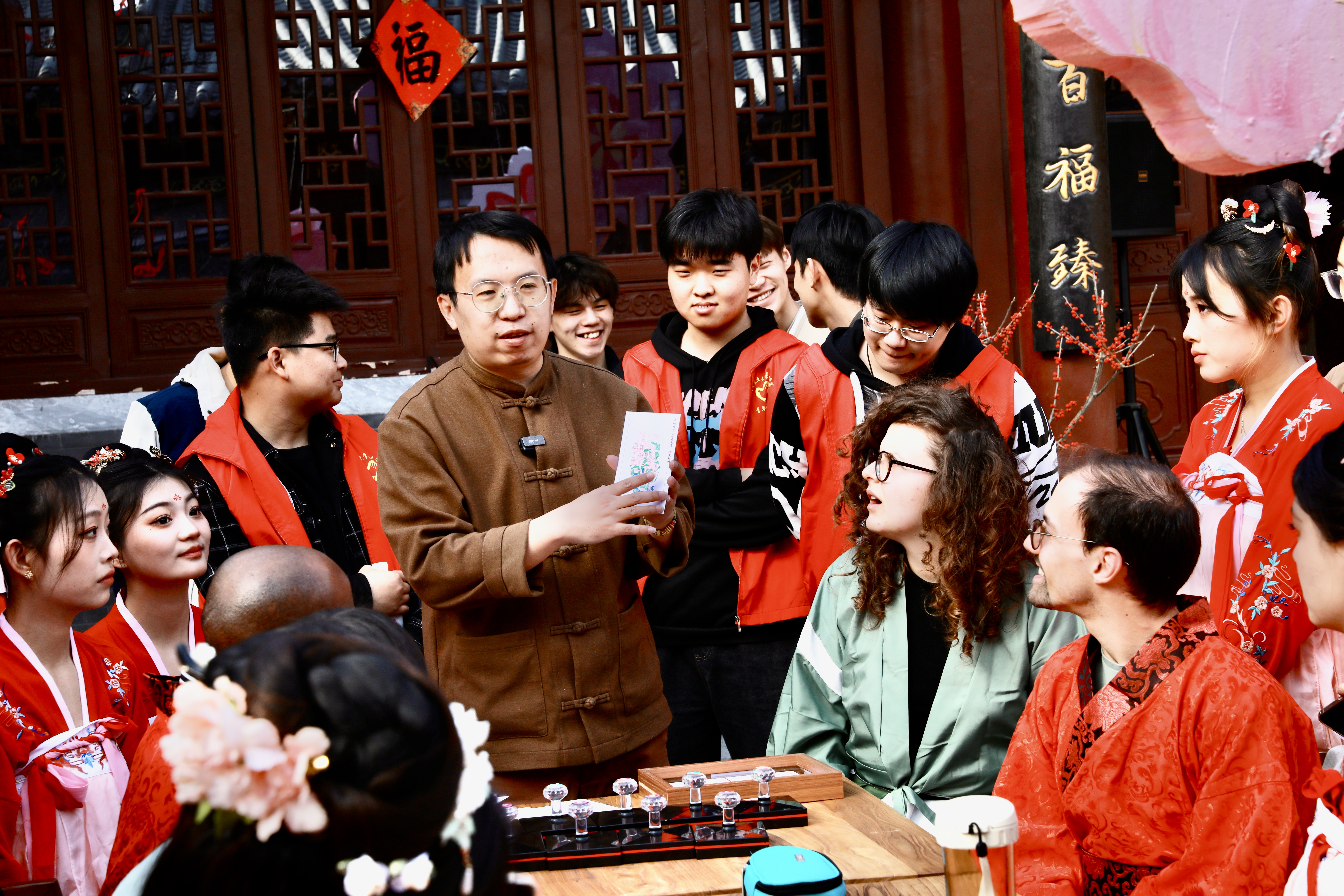 活动伊始,学院艺术团古典舞社、古琴社带来的精彩舞蹈和古筝演奏使在场师生纷纷沉浸其中,并邀请现场留学生进行古筝演奏体验,深入感受传统艺术之美。随后,文化空间福文化创意设计者米戈老师通过“福”字拓印为师生们细致入微地讲解“福”文化的起源和演变,让留学生对“福”文化有了更加深刻的理解。实践环节,留学生们亲手体验拓印技艺,沉浸式感受中华传统文化的魅力。