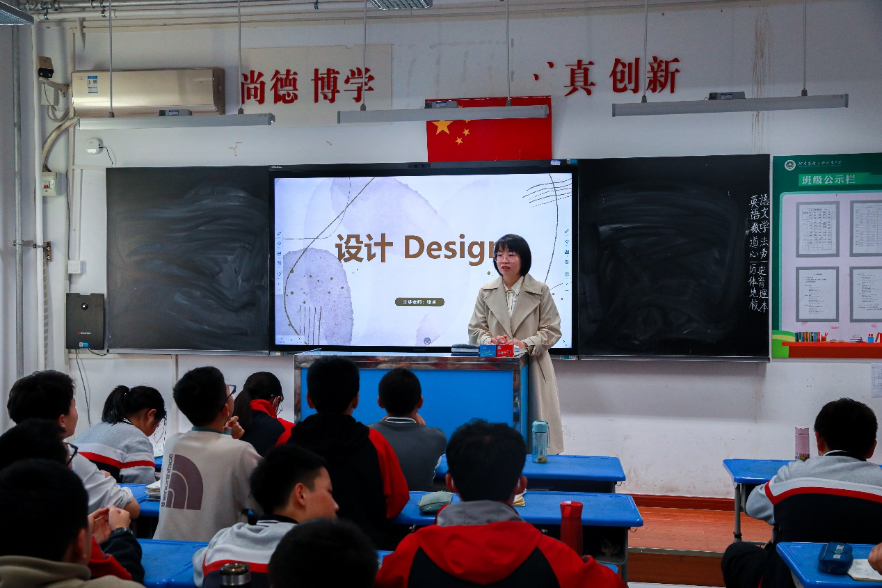 艺术系教工党支部教师张卓到附属中学举办“艺术设计进校园系列美育宣讲活动进附中系列之四——设计与生活”。