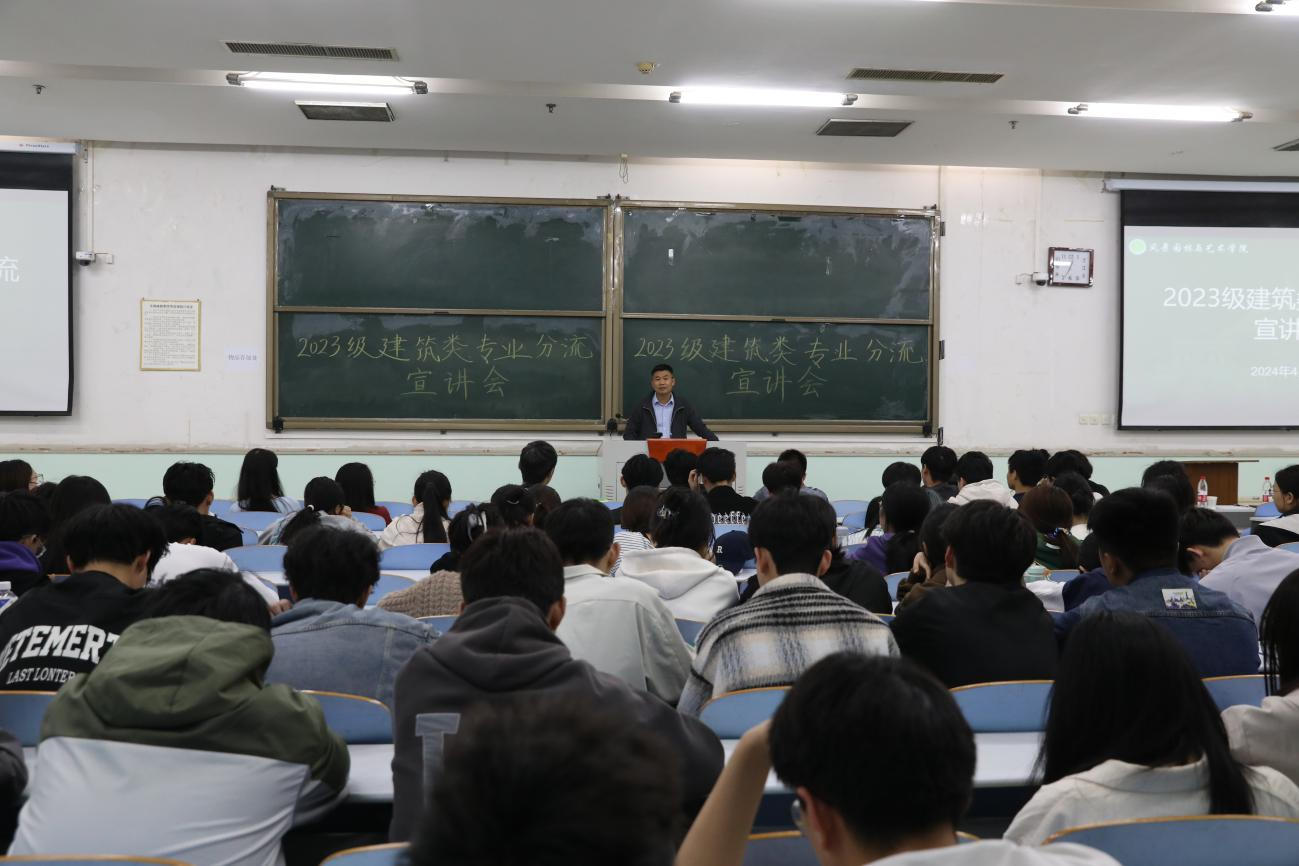 于文化路校区工程楼101教室召开2023级建筑专业分流宣讲会。风景园林系教师刘保国、张淑梅,城乡规划系教师何瑞珍、郭楠出席会议,2023级全体建筑类学生参加本次会议。