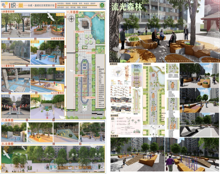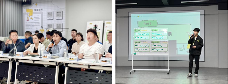 学生团队组长分别围绕对永威·鑫城设计的两个改造项目《织巢》和《流光森林》进行了现场汇报,介绍了作品的设计背景、构思和内容,展现了优秀创意,积极回应居民需求,尤其突出了对老人、儿童的重点关注,充满了浓浓的人文关怀。现场评委及大众评审团进行了提问、投票及合议。