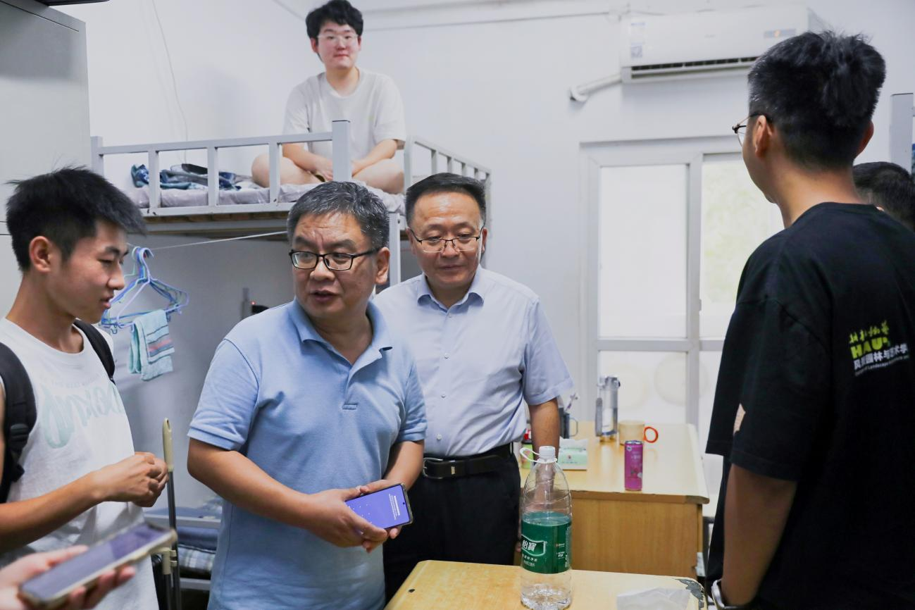 2024级新生寝室情况,传递学院对新生的关怀与问候,9月12日下午,院党委书记侯永华、院党委副书记赵九阳、副院长阴予兴、副院长李永华,及学院团委老师深入新生宿舍进行走访慰问。