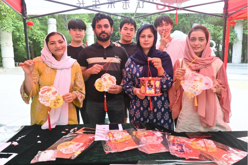 活动现场,结合中秋节的传统风俗和节日文化,为广大学子举办了手工花灯制作、漆扇制作、汉服体验、猜灯谜、投壶等具有传统文化趣味的活动。花灯作为中秋节的文化象征,吸引了很多同学们前来动手制作,同学们在工作人员的细心指导下,纷纷动手参与进来,一盏盏如梦如幻的花灯勾勒出了一幅幅五彩缤纷、美轮美奂的画卷。现场还邀请留学生身着汉服进行漆扇制作体验,留学生们在亲手制作的过程中感受到了中国传统非遗文化的魅力所在。广大学生在一件件精巧细致、新颖独特、形式多样的手工作品中,感受到了传统节日文化的非凡意义。