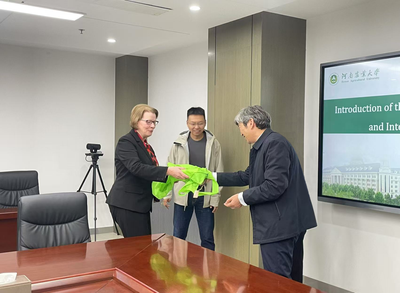 会议伊始,杨喜田对凯瑟琳一行的来访表示欢迎,并简要介绍了我校的基本情况。他表示,学校正锚定创建中国特色世界一流农业大学的奋斗目标,紧抓“双一流”创建、与中国农业科学院融合发展两大契机,致力于打造教育、科技、人才一体化发展的科教融汇综合体,建设新型研究型大学,建设现代农业领域世界重要教育中心、人才中心、主要科学中心和创新高地,期待与纽约州立大学能在既往合作成功经验的基础上开展深入交流,进一步增进两校间的友谊,促进双方多学科,全方位,更深层次的合作。