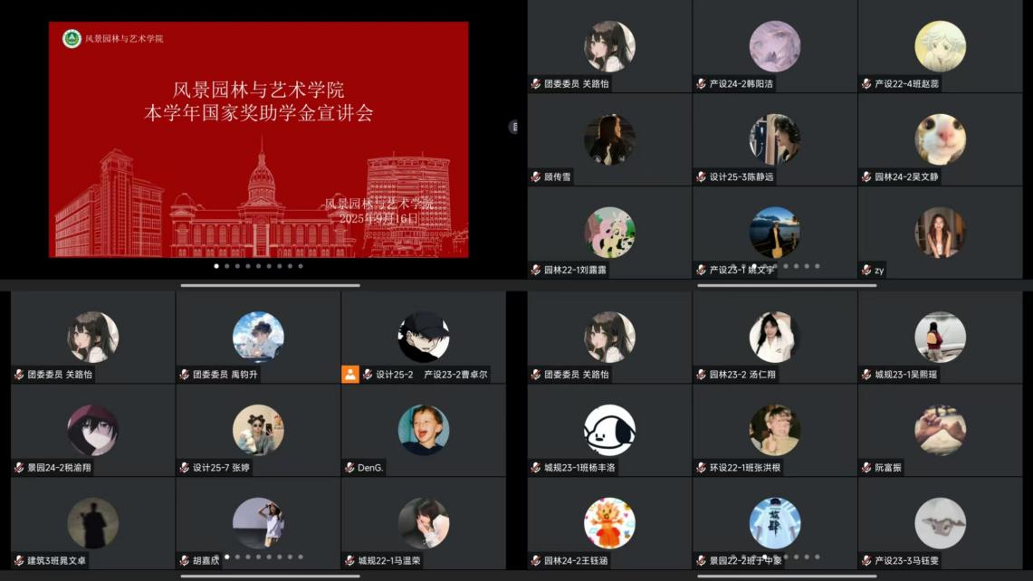 通过线上方式组织召开2025学年国家奖助学金评审发放工作专题会议,就本年度国家奖助学金评审相关事宜进行部署和说明。各系部负责人、各年级班级班长支书以及工作相关人员参加会议。
