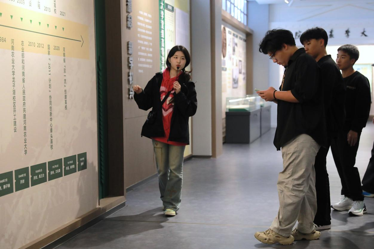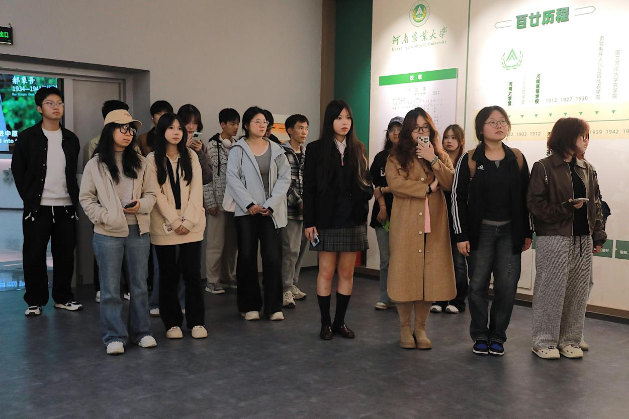 活动中,校史馆讲解员结合珍贵的实物展品、历史照片和文字资料,生动讲述了小黄书 从建校至今的发展历程,详细介绍了学校建校一百年来的迁址和改名历程以及如今我校在农业科研、人才培养、社会服务等方面取得的突出成就。新生们认真聆听、驻足记录,在过程中逐渐加深对学校的认同感与归属感。