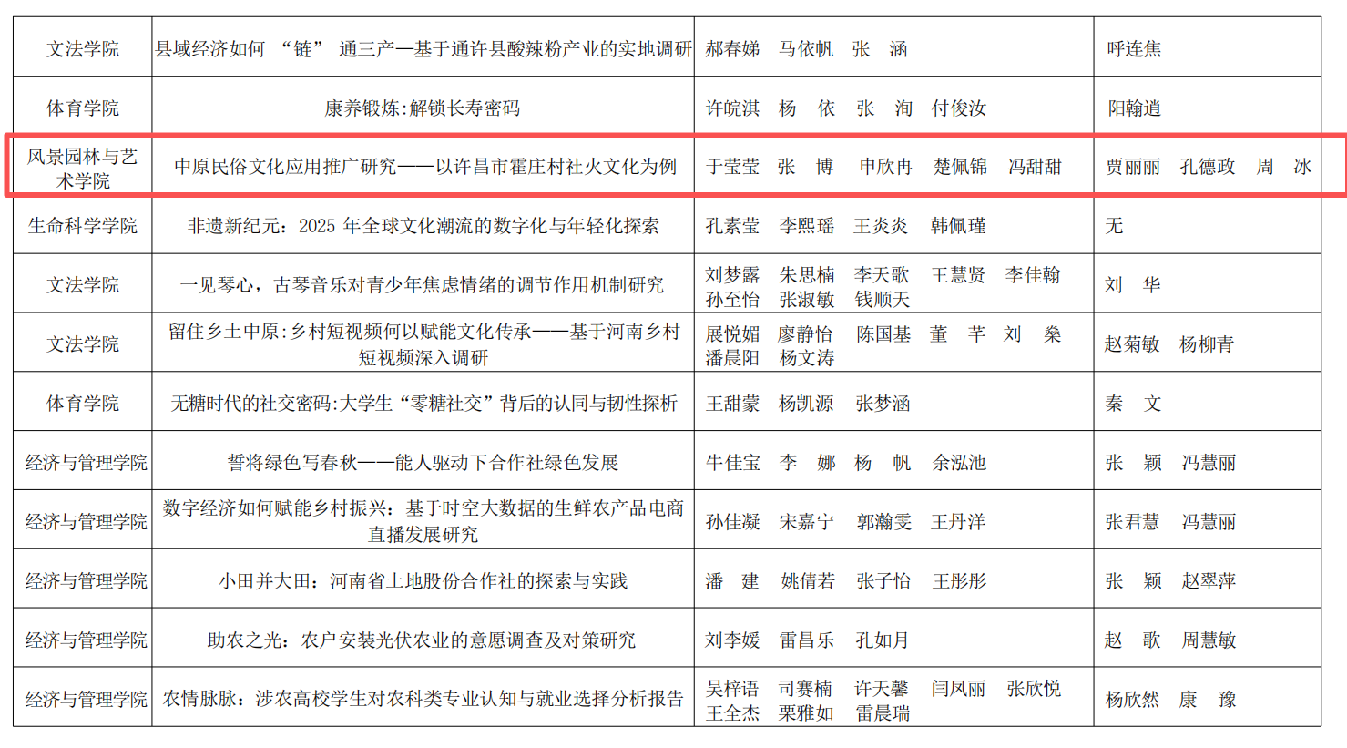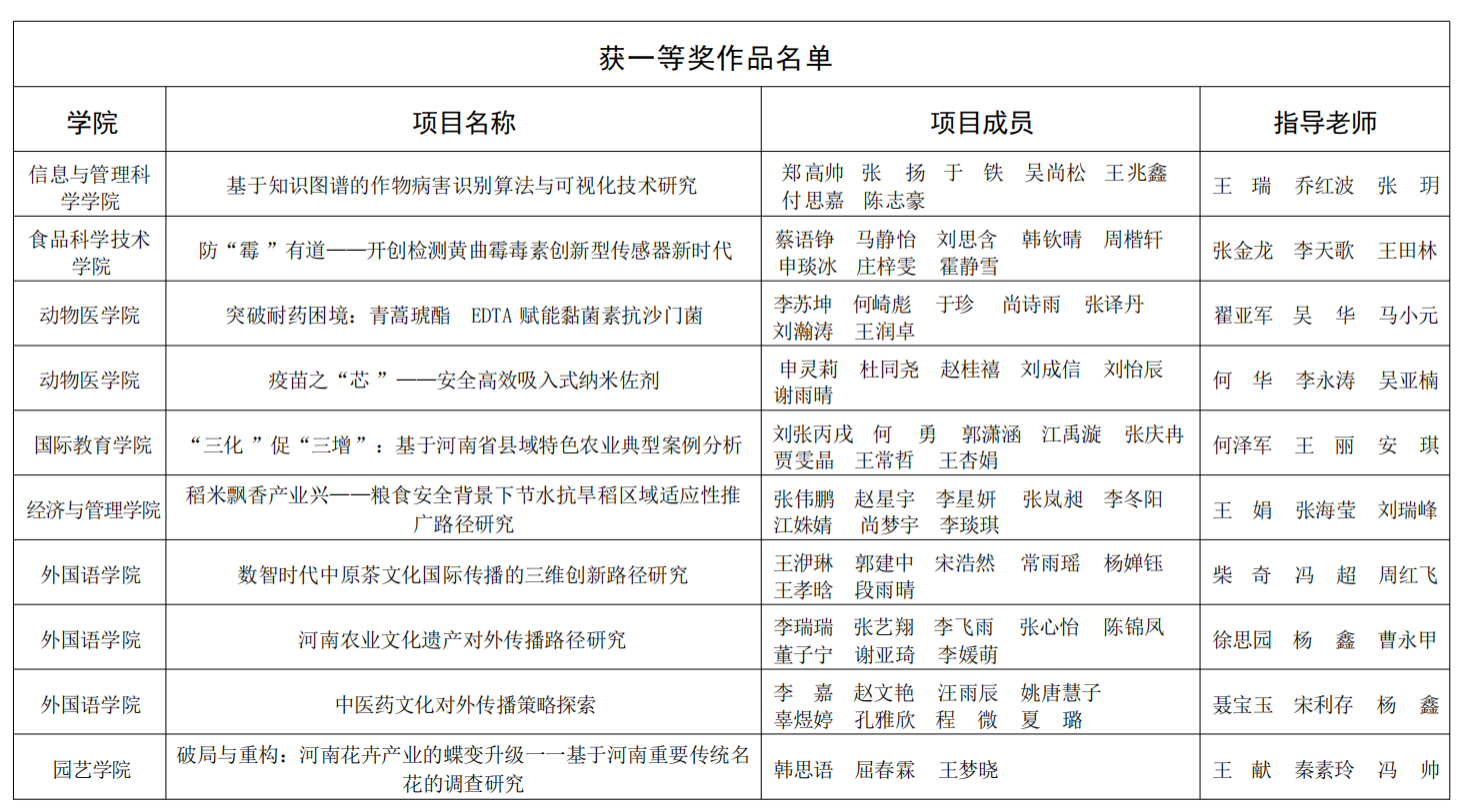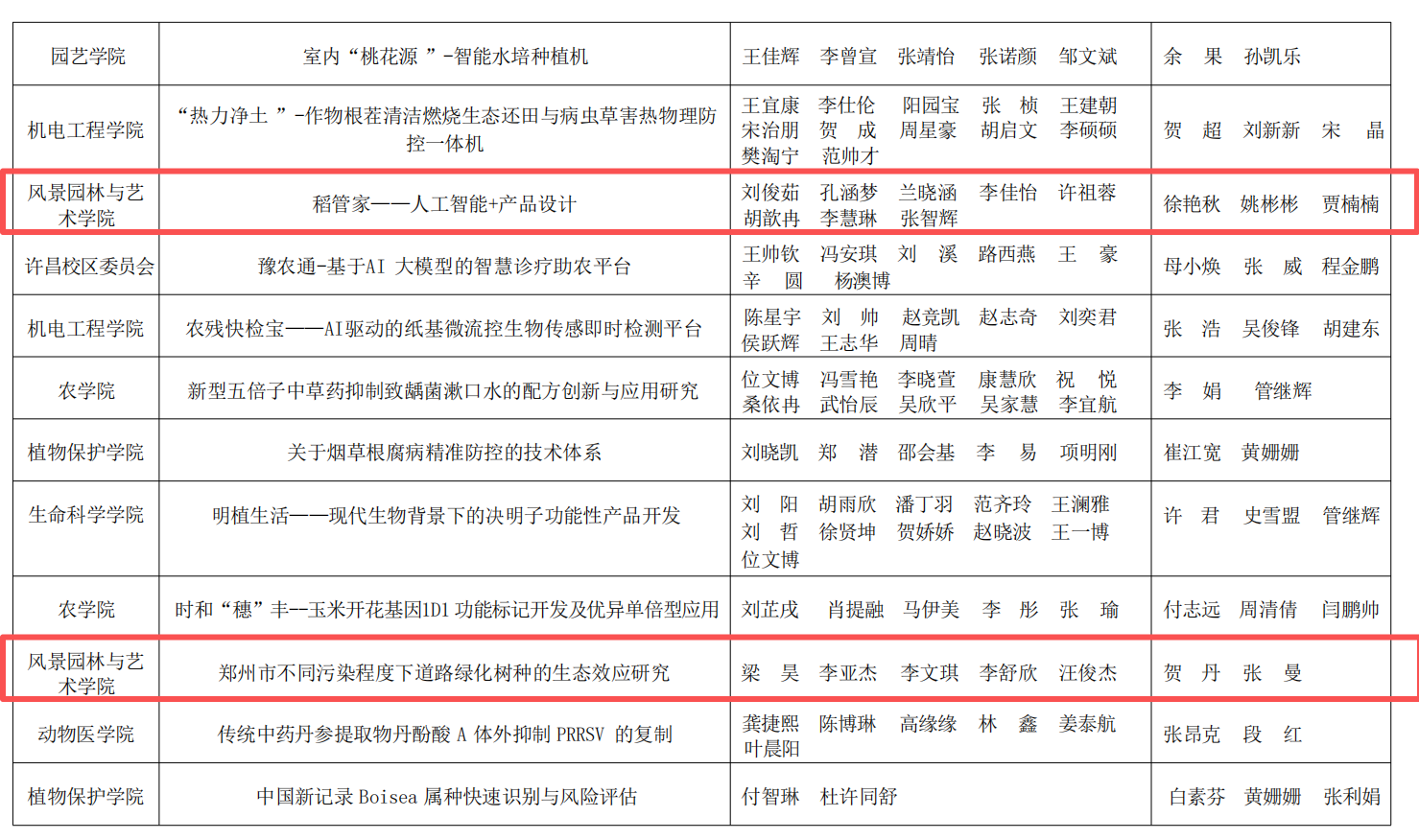 获奖作品中,《豫见未来·乡链世界---设计赋能乡村振兴文化融创实践调研》项目获得特等奖。《有基于北方高密度街区调研的城市热环境与蓝绿基础设施优化策略》《戏脉黄河·匠心入韵--黄河国家文化公园河南段戏曲文化资源整合与文化线路地图研究》两个项目获得一等奖。《稻管家——人工智能+产品设计》《郑州市不同污染程度下道路绿化树种的生态效应研究》两个项目获得二等奖。三等奖作品有《河南省乡村旅游信息服务供需匹配现状及智慧化赋能对策调查研究》《中原民俗文化应用推广研究——以许昌市霍庄村社火文化为例》《台风模拟实验教育展示装置》。每一份荣誉的取得,既离不开指导老师的悉心指导与专业引领,也凝聚着同学们的不懈拼搏与团队协作。这不仅生动展现了小黄书