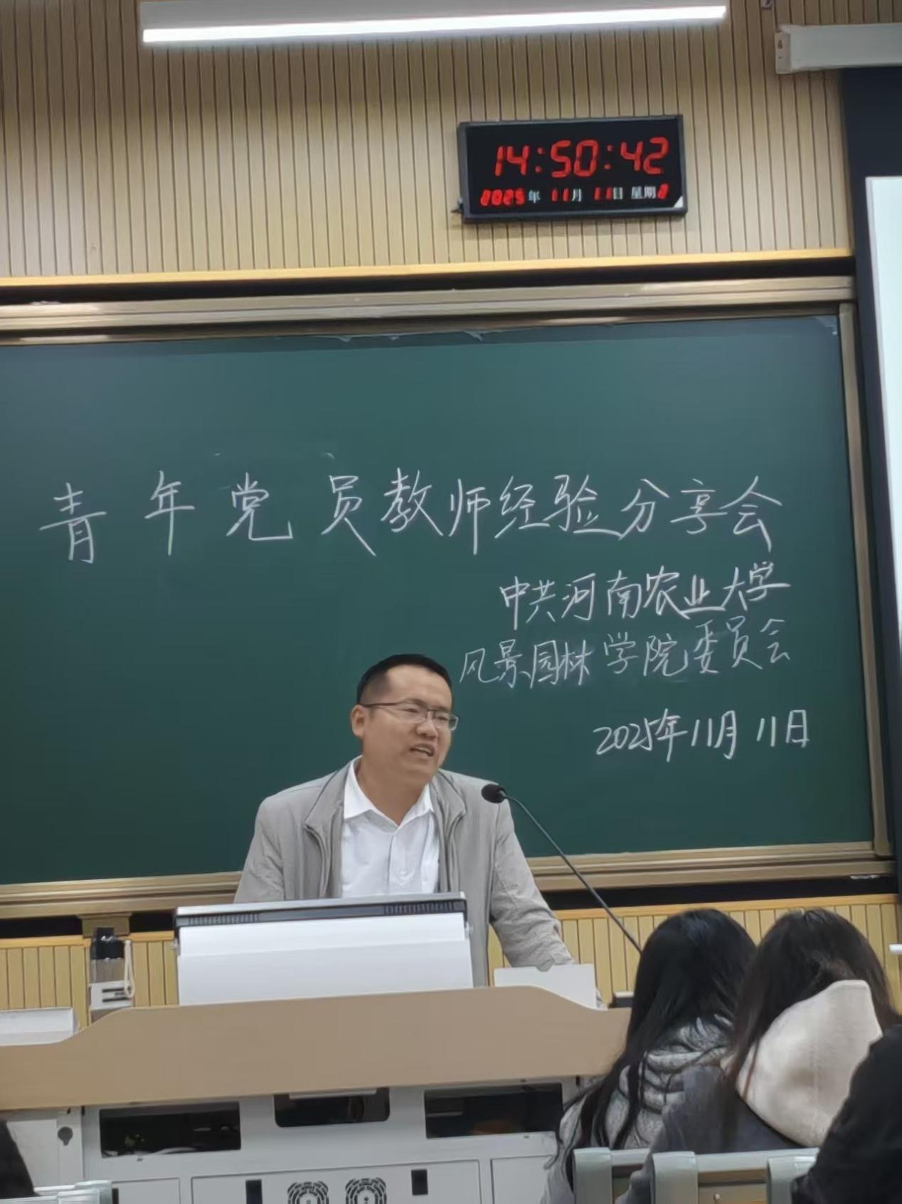 在文化路校区3号楼104开展第四期“青年党员教师话成长”经验交流活动。风景园林系青年博士党员教师韩平阳、园林系青年博士党员教师刘伟超受邀主讲,学院学生党员、入党积极分子、各学生干部代表120余人参加现场分享。